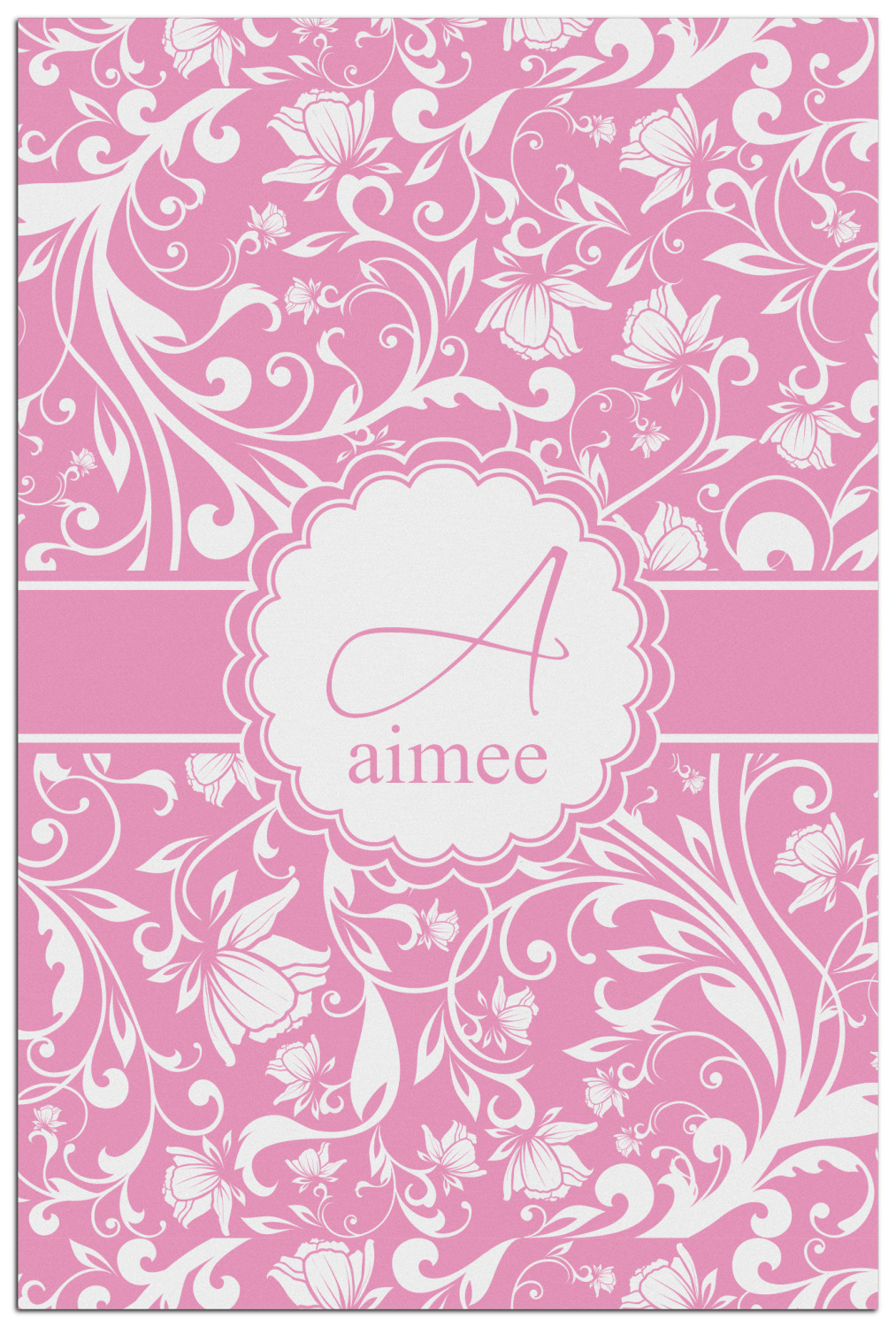 This gorgeous floral pattern combines the classic soft baby pink and white. The design has a classic ribbon in the baby pink trimmed in white. The decorative scalloped label is also in the soft baby pink and white. Add an initial and a name for that personal touch to pull the entire design together.