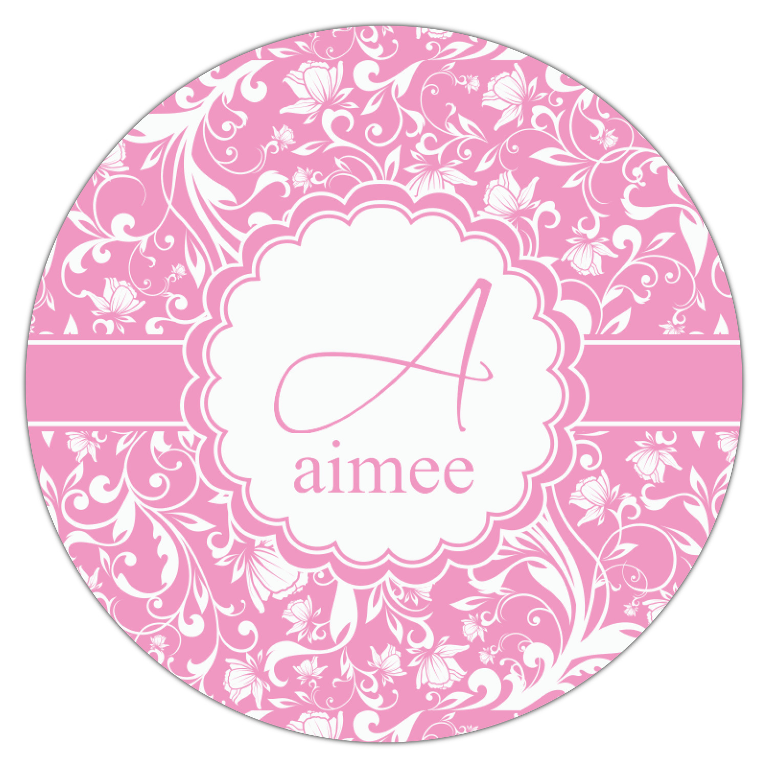 This gorgeous floral pattern combines the classic soft baby pink and white. The design has a classic ribbon in the baby pink trimmed in white. The decorative scalloped label is also in the soft baby pink and white. Add an initial and a name for that personal touch to pull the entire design together.