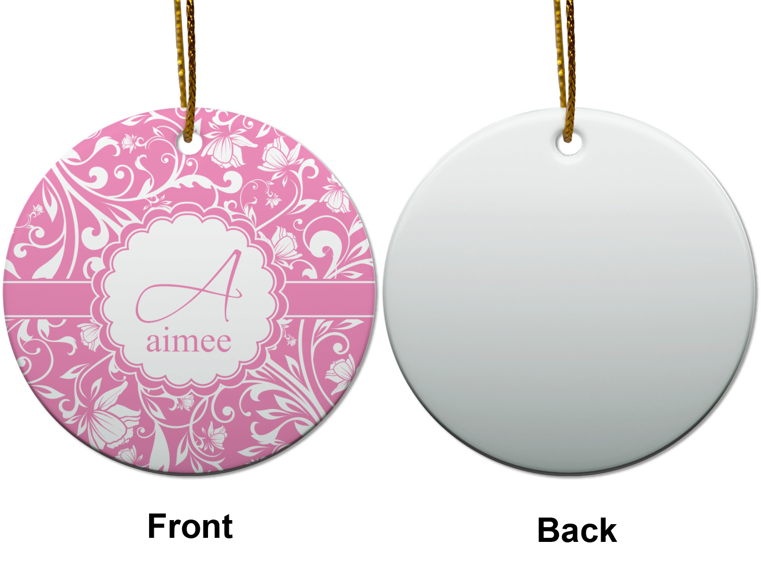 This gorgeous floral pattern combines the classic soft baby pink and white. The design has a classic ribbon in the baby pink trimmed in white. The decorative scalloped label is also in the soft baby pink and white. Add an initial and a name for that personal touch to pull the entire design together.