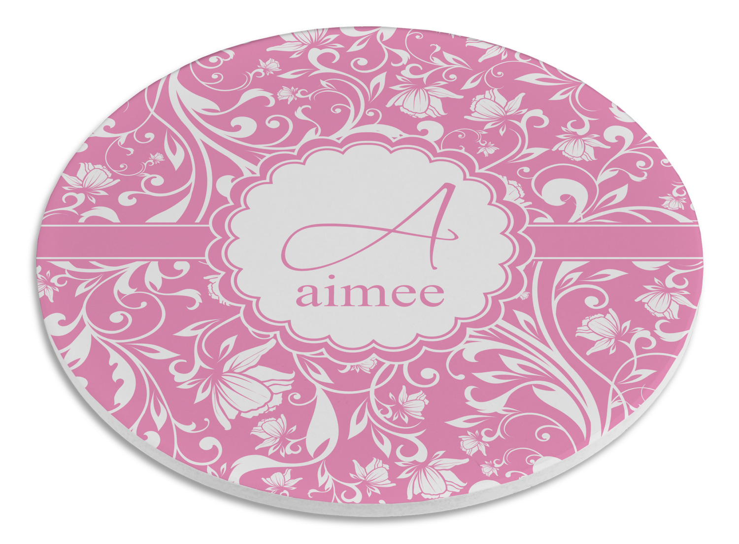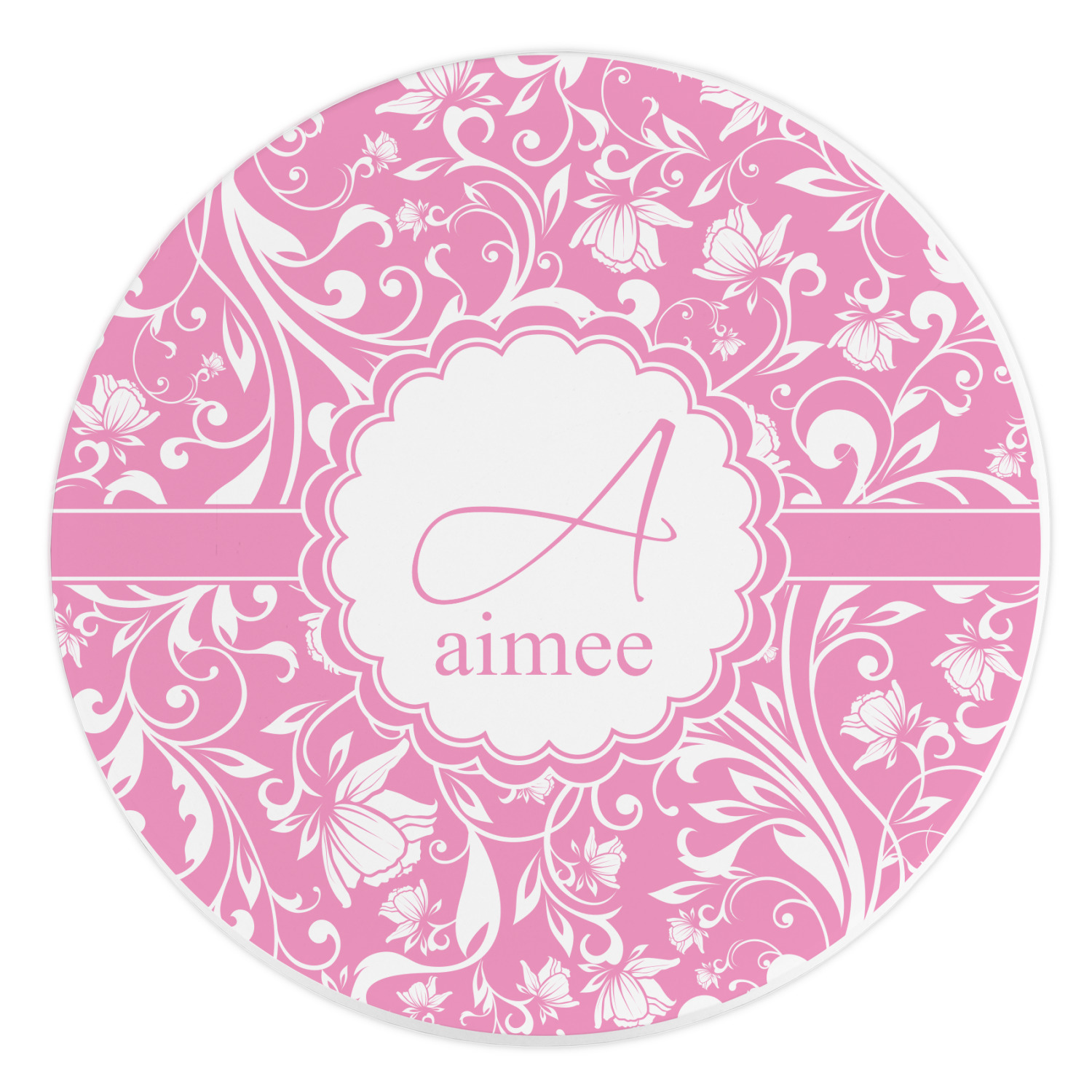 This gorgeous floral pattern combines the classic soft baby pink and white. The design has a classic ribbon in the baby pink trimmed in white. The decorative scalloped label is also in the soft baby pink and white. Add an initial and a name for that personal touch to pull the entire design together.