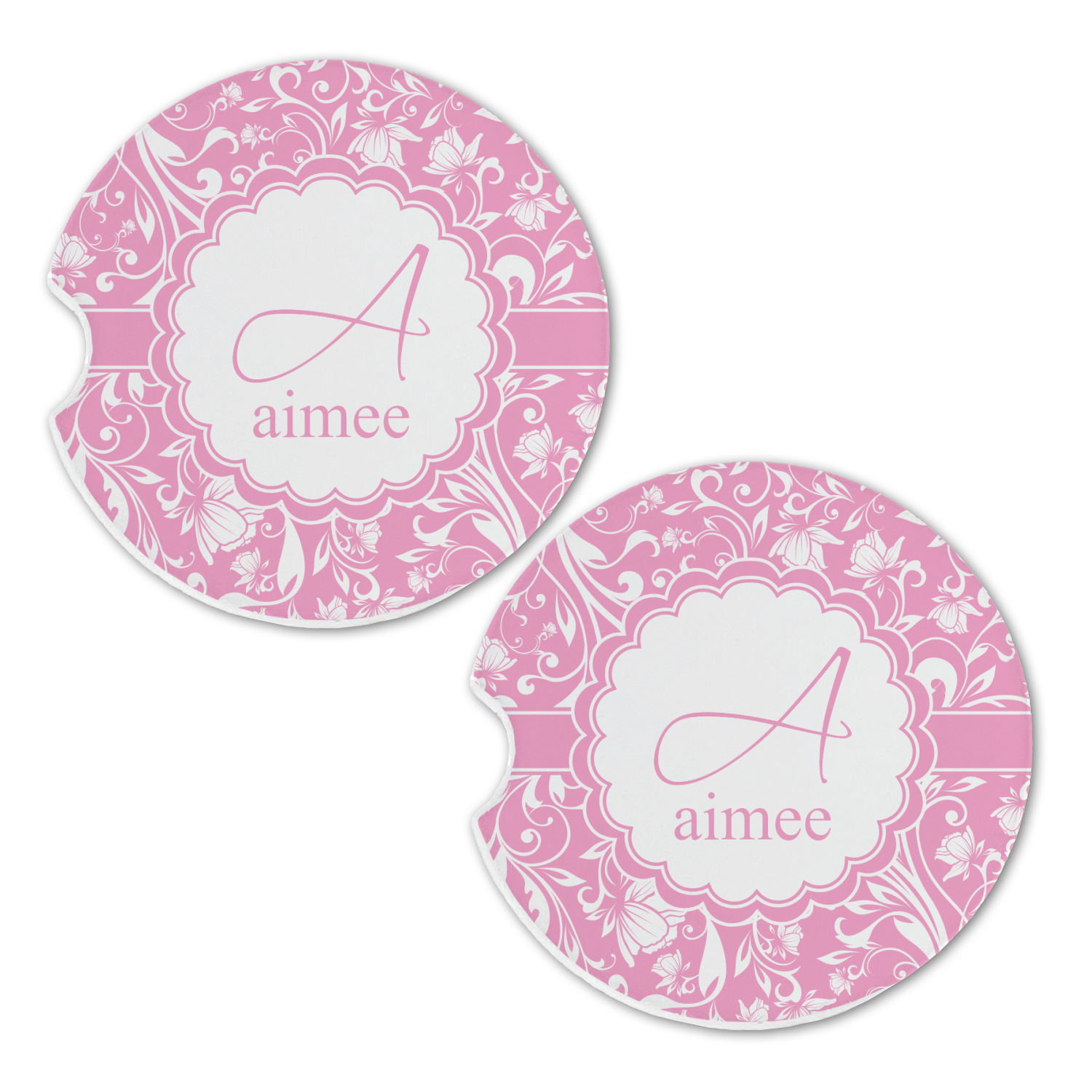 This gorgeous floral pattern combines the classic soft baby pink and white. The design has a classic ribbon in the baby pink trimmed in white. The decorative scalloped label is also in the soft baby pink and white. Add an initial and a name for that personal touch to pull the entire design together.