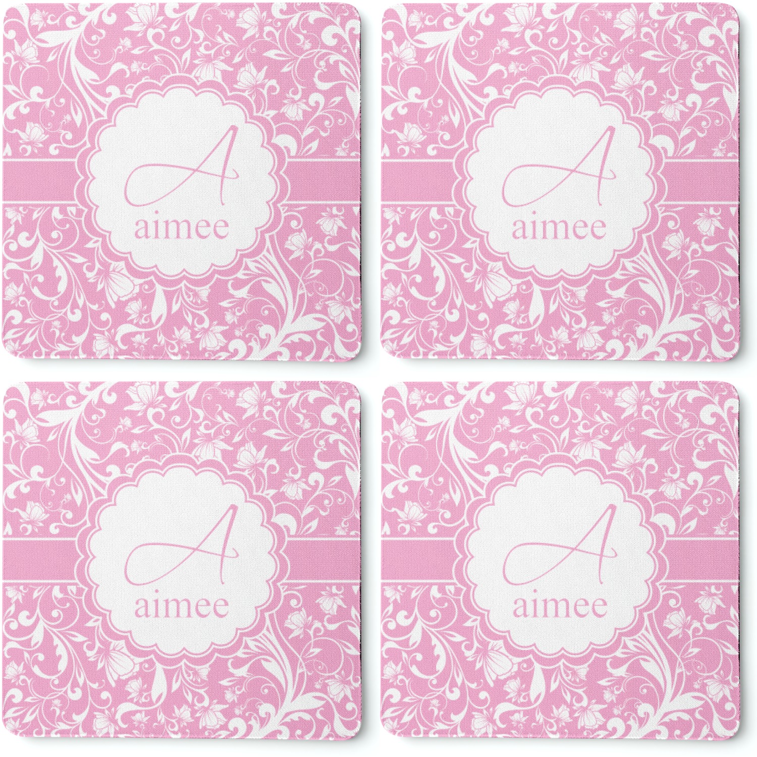 This gorgeous floral pattern combines the classic soft baby pink and white. The design has a classic ribbon in the baby pink trimmed in white. The decorative scalloped label is also in the soft baby pink and white. Add an initial and a name for that personal touch to pull the entire design together.