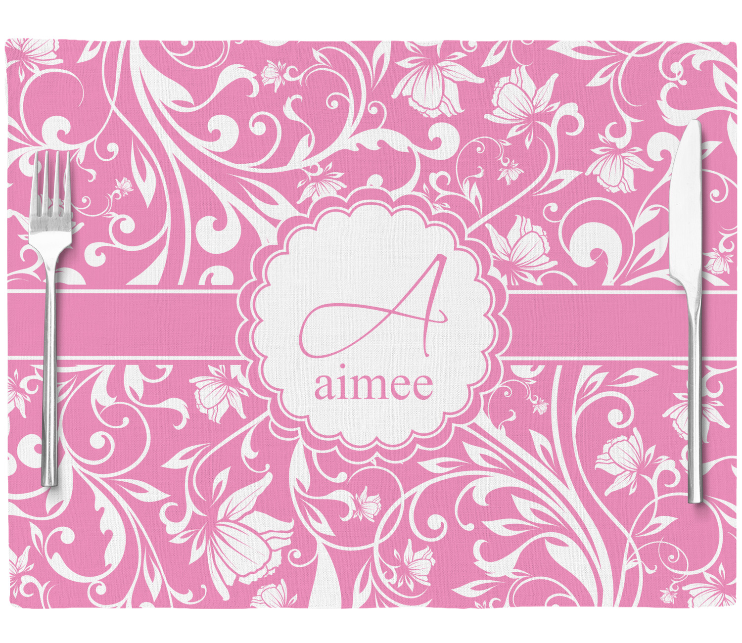 Each of our table mats are a poly twill material with woven burlap detailing. This creates a soft, quality placemat for us to fully print your personalized design across. The woven twill also adds a wrinkle-free surface to set your table! Each customizable placemat is a rectangle shape measuring at approximately 13 x 18 and printed here in the USA.