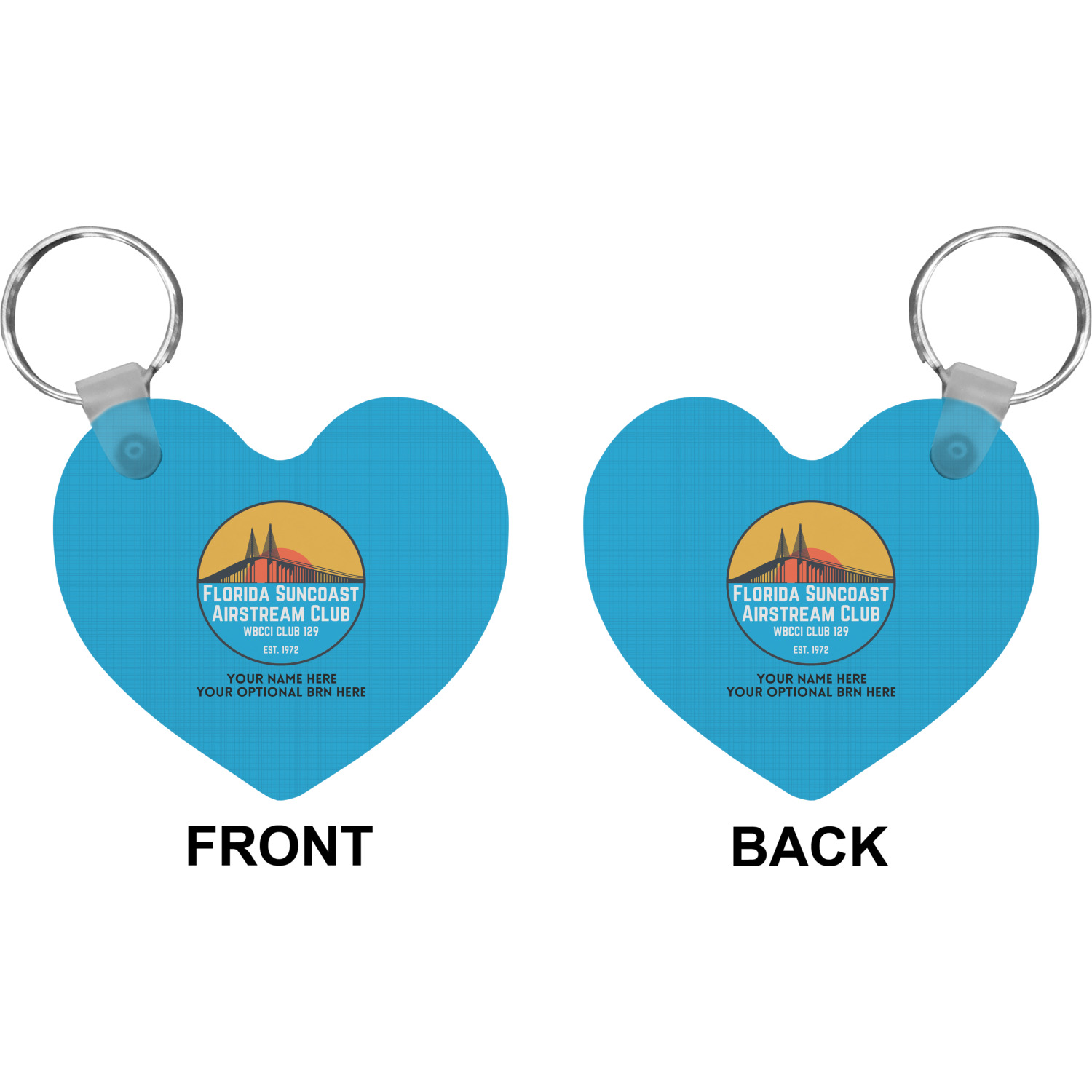 Our personalized keychains attach to the included metal, split key ring with a plastic, removable snap. Since a metal ring is included with your purchase, you have the liberty to keep your keys together on the ring, with or without your unique keychain. We offer this keychain in three different shapes: circle, heart, or diamond. We print your personalized design(s) on both sides of the key chain, and the surface has a glossy, reflective finish that only emphasizes your design. Each keychain is approximately 2.25 by 2.25 inches.