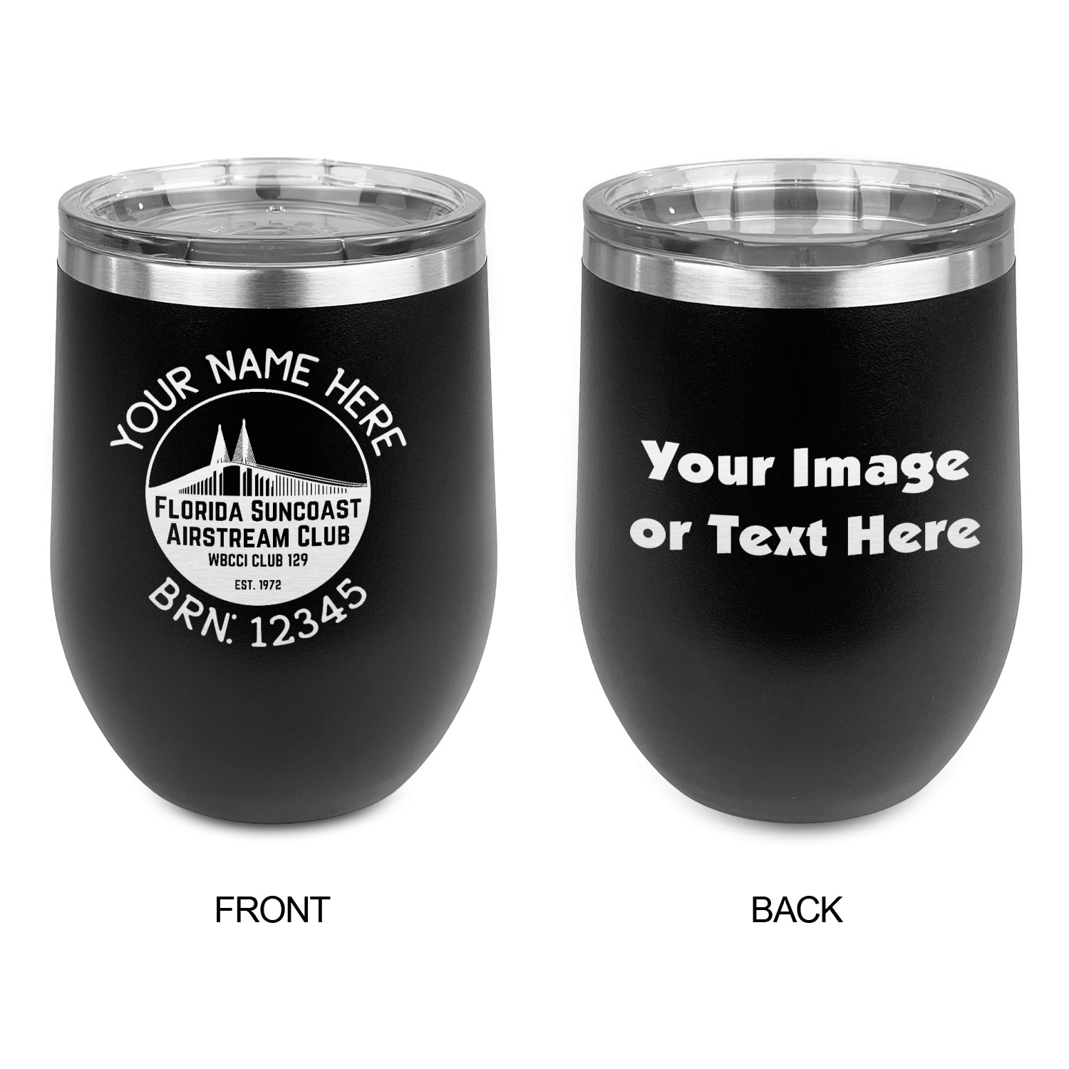 Design your wine tumbler with a cool graphic or quote. Even put your initials or monogram! These cups are laser engraved, which looks extra sharp on the metal tumbler.