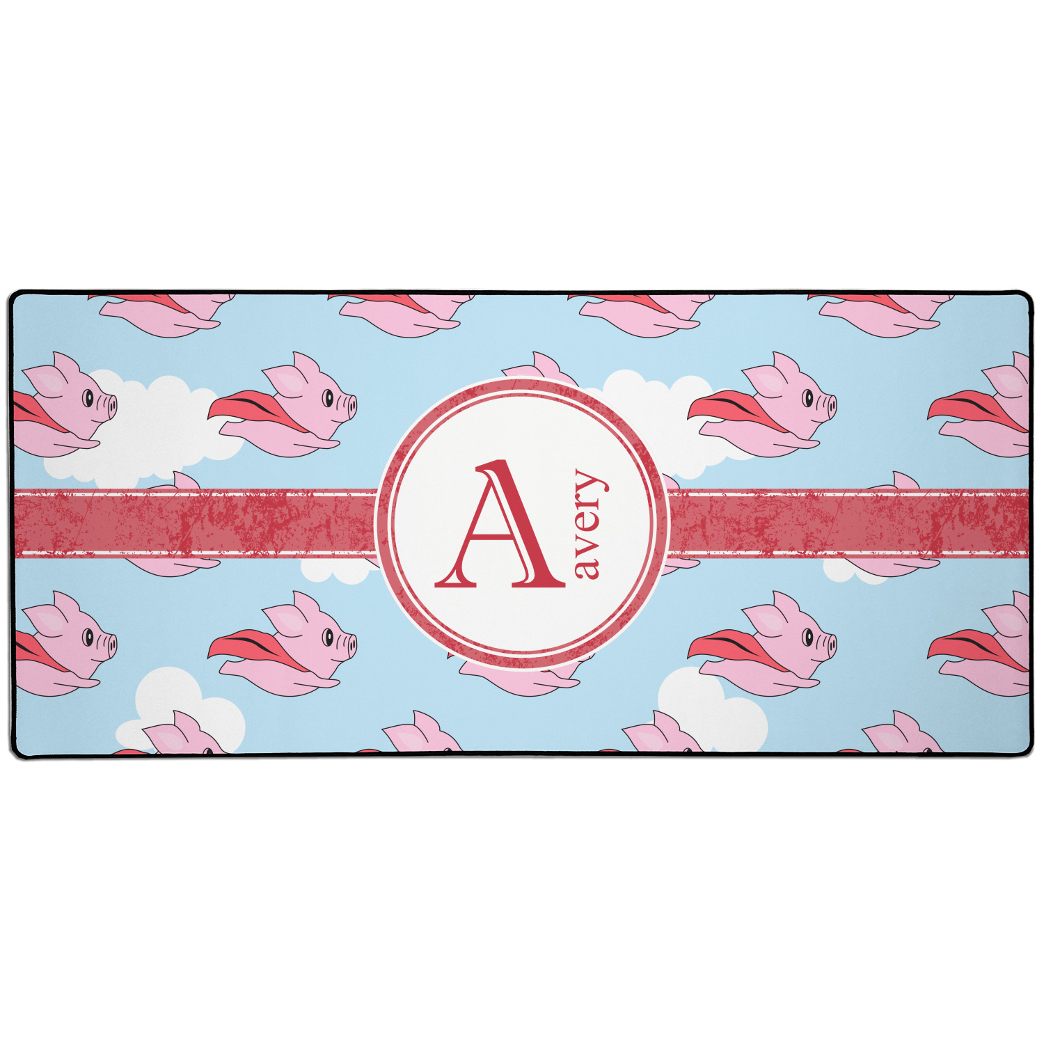 This design with pigs flying is simply fun and playful. The background is of course the sky. We then have a pink pig wearing a red hood flying like a super hero!