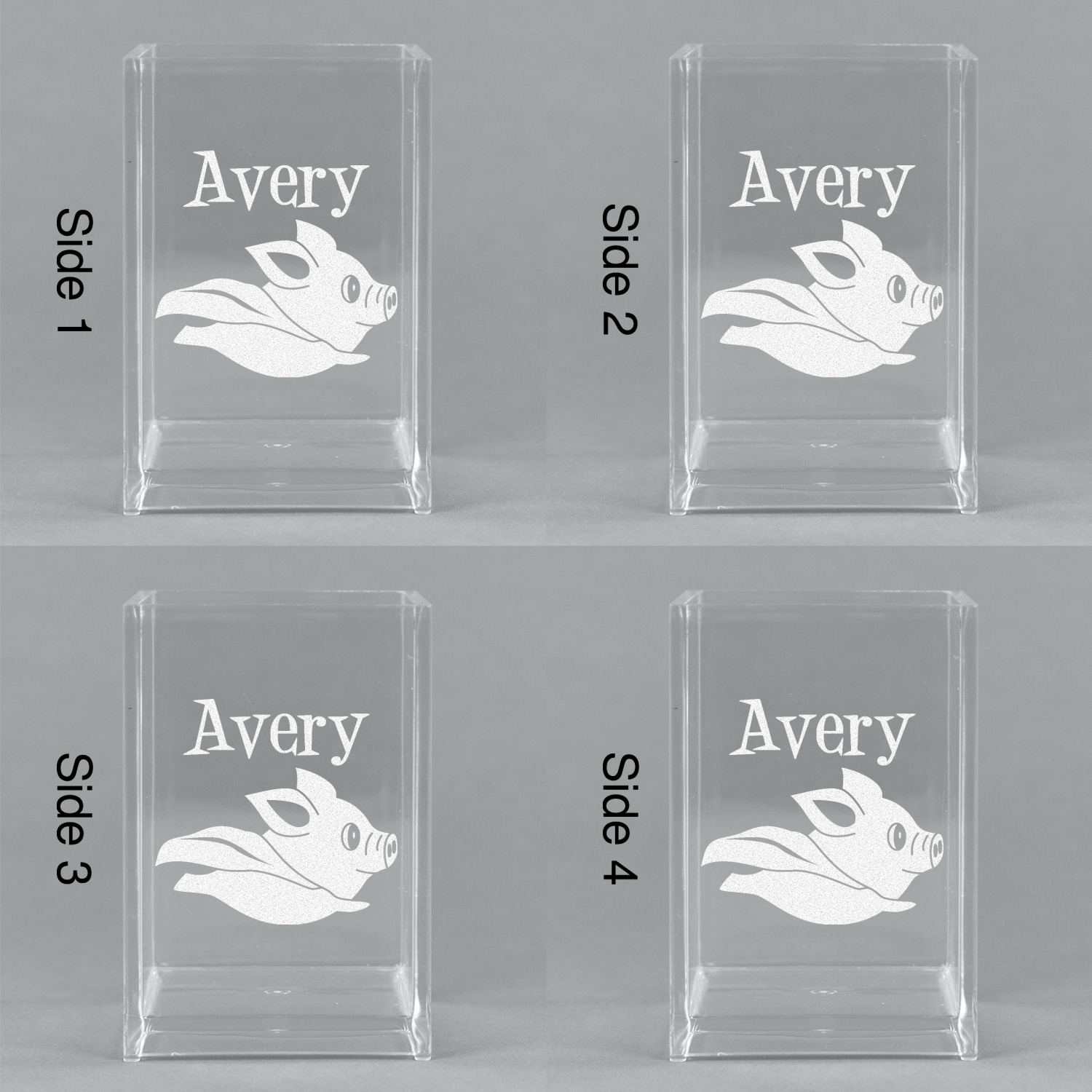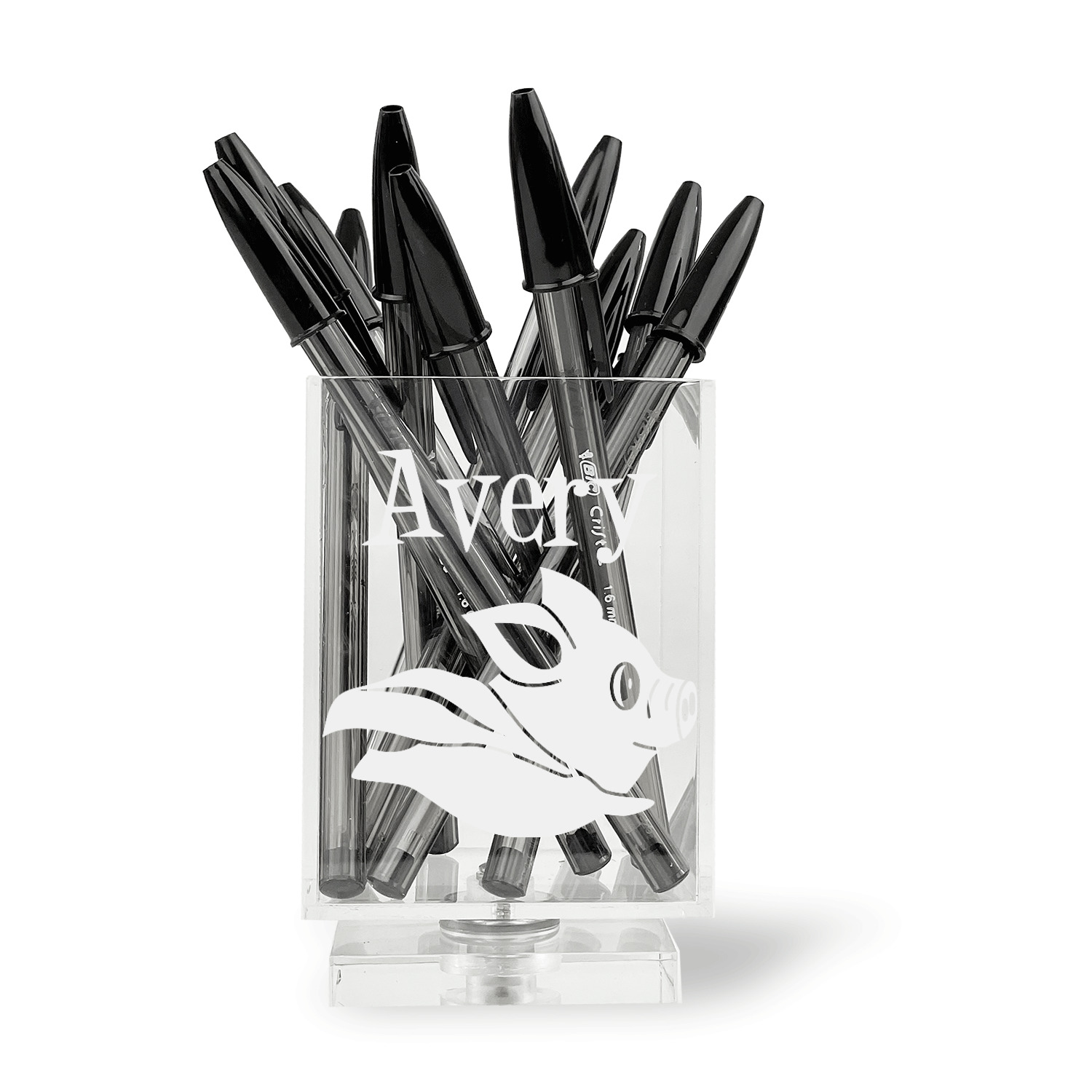 Add a great accessory to your desk with one of these acrylic pen holders. A great way to store your writing utensils, and personalized to suit your needs.