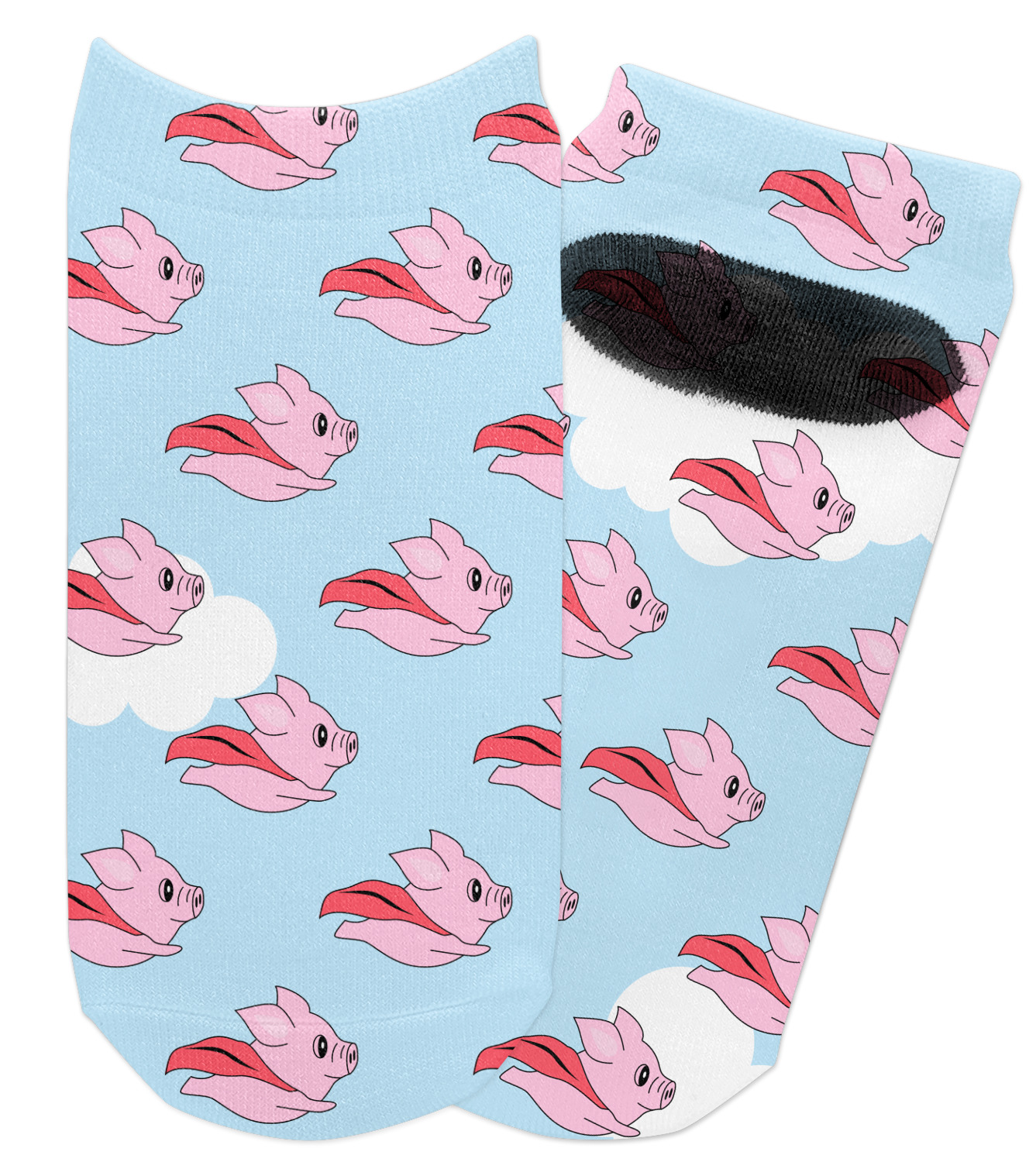 This design with pigs flying is simply fun and playful. The background is of course the sky. We then have a pink pig wearing a red hood flying like a super hero!
