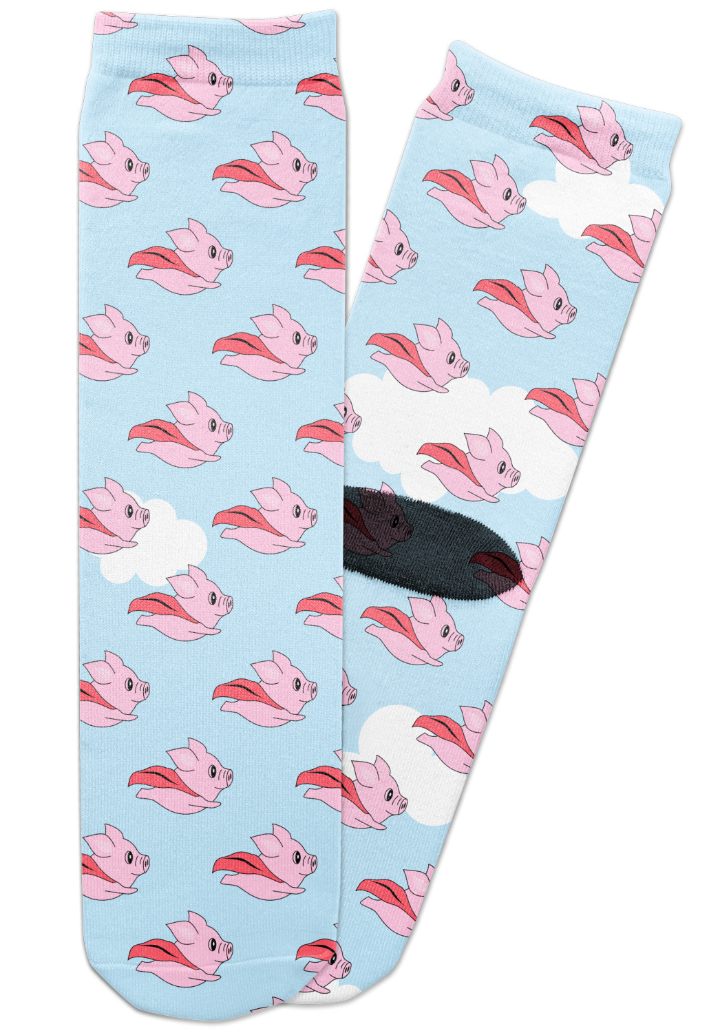 This design with pigs flying is simply fun and playful. The background is of course the sky. We then have a pink pig wearing a red hood flying like a super hero!