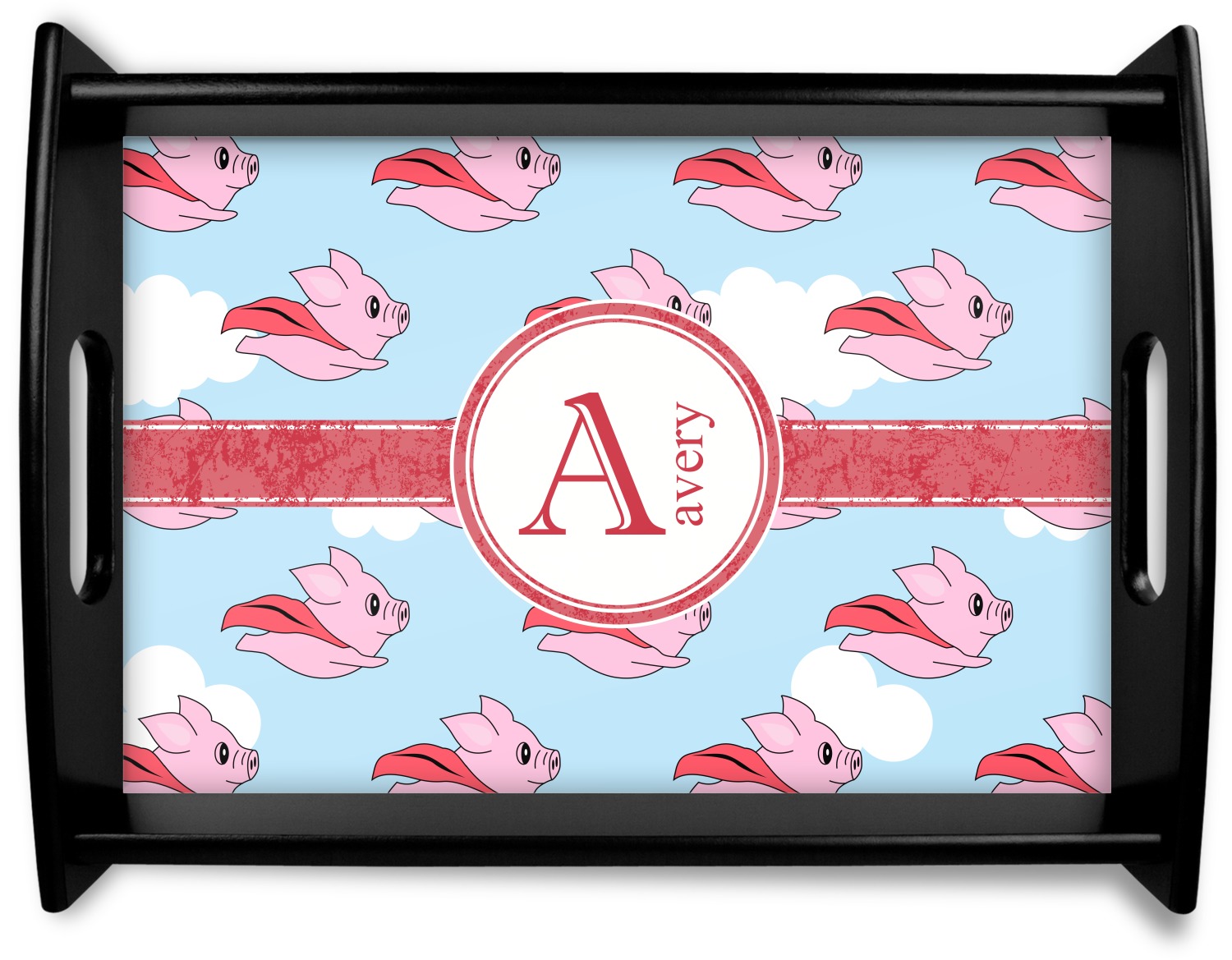 This design with pigs flying is simply fun and playful. The background is of course the sky. We then have a pink pig wearing a red hood flying like a super hero!