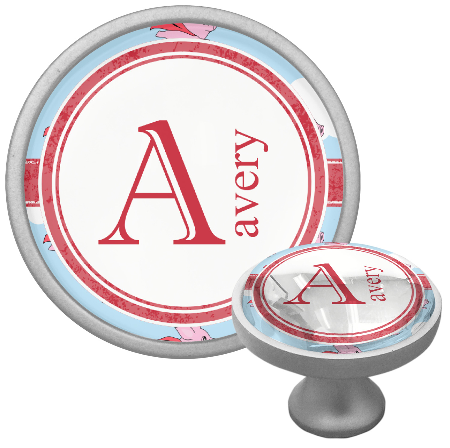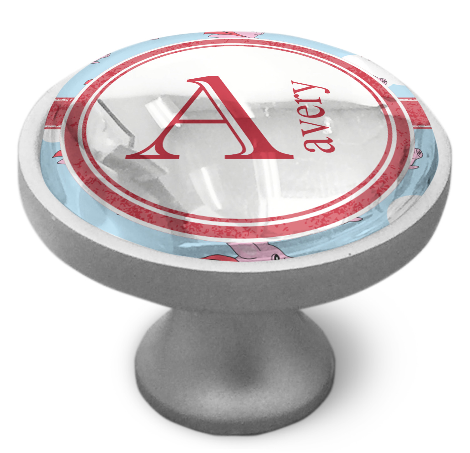 We sell these cabinet pulls in two different colors to better match your room's color scheme. We offer an oil-rubbed bronze base that is black in color, and a satin nickel option, which has a silver color. Your design is displayed across a high gloss vinyl insert that is placed on top of these cabinet handles. We then place a 1 inch thick glass cabochon atop the design, which seals the cabinet knob and makes the colors of your customization stand out. These custom cabinet knobs are approximately 1.3 inches in diameter. Your purchase includes a 1 inch screw that can be used to mount the knob to any cabinet in your home.
