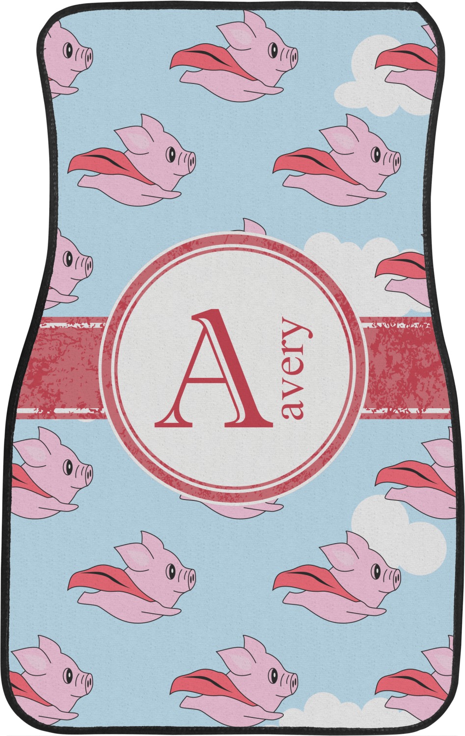 This design with pigs flying is simply fun and playful. The background is of course the sky. We then have a pink pig wearing a red hood flying like a super hero!
