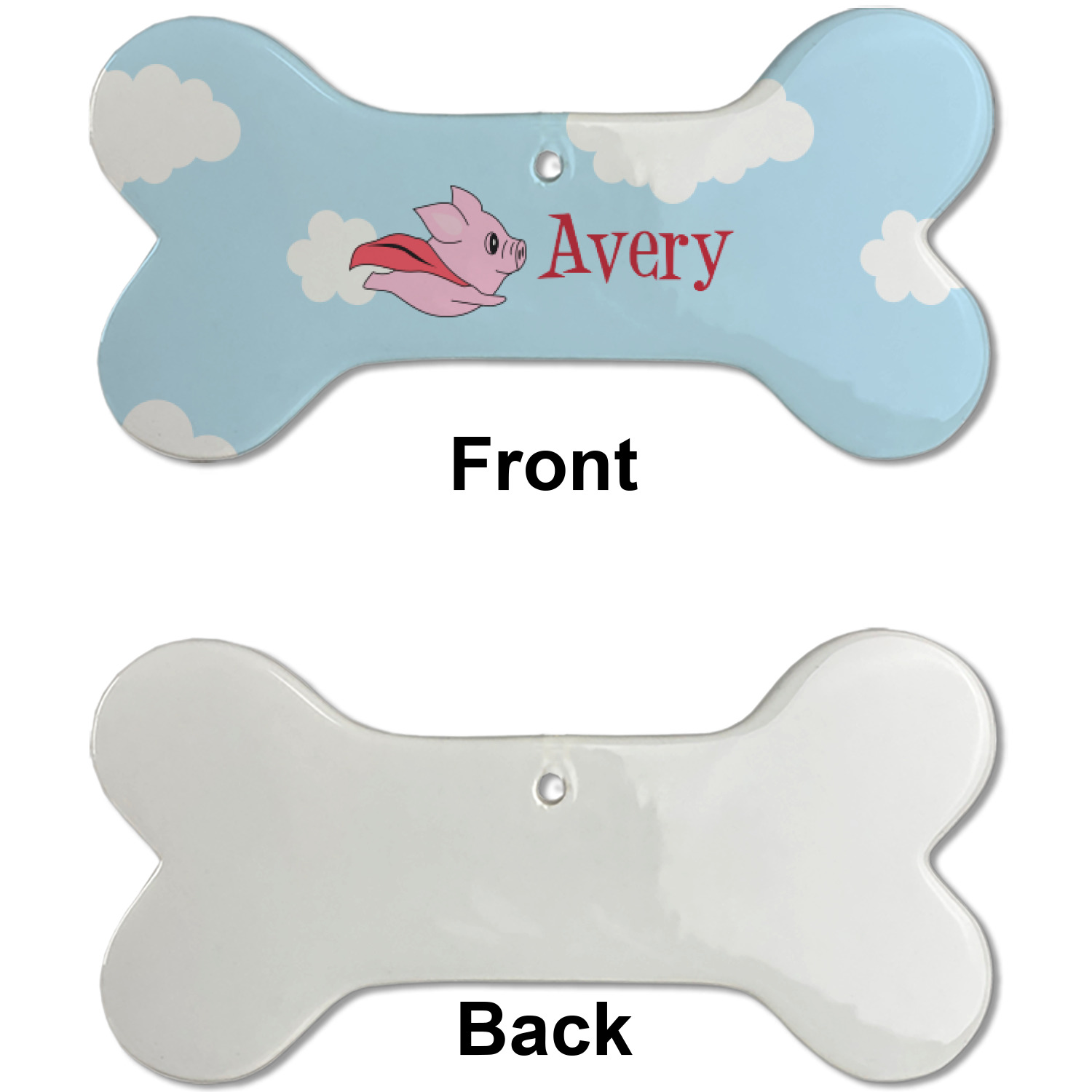 Our dog Christmas ornaments are a ceramic material with a bone-shaped structure hung horizontally. We offer two printing styles to personalize your furry friend's ornament! Choose a one-sided printing, perfect for wall decor, memorial accessory, or doghouse nameplate! Create a double-sided ornament perfect for adorning the Christmas tree. Each dog bone ornament is approximately 4.75" x 2.25" and is printed here in the USA.