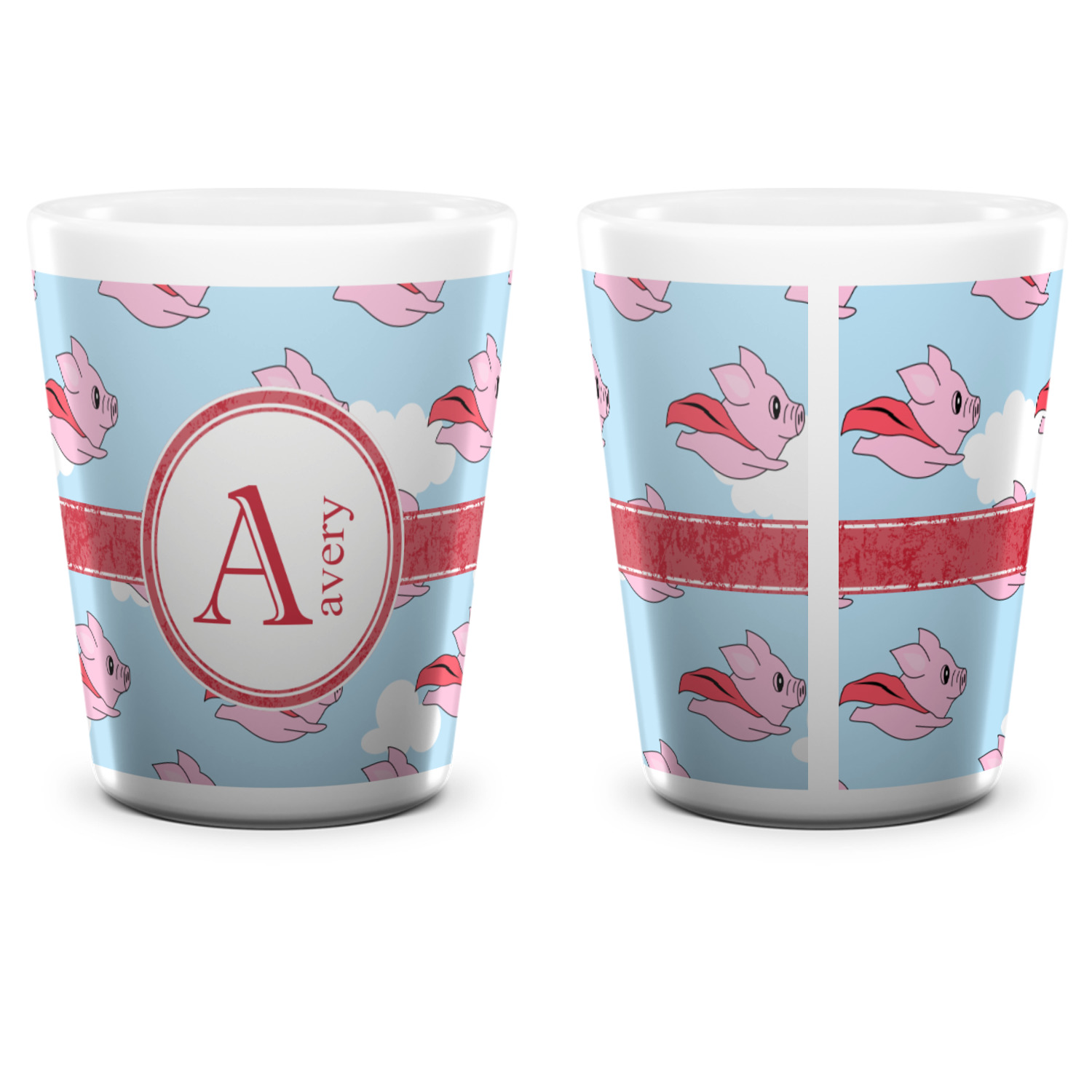 This design with pigs flying is simply fun and playful. The background is of course the sky. We then have a pink pig wearing a red hood flying like a super hero!
