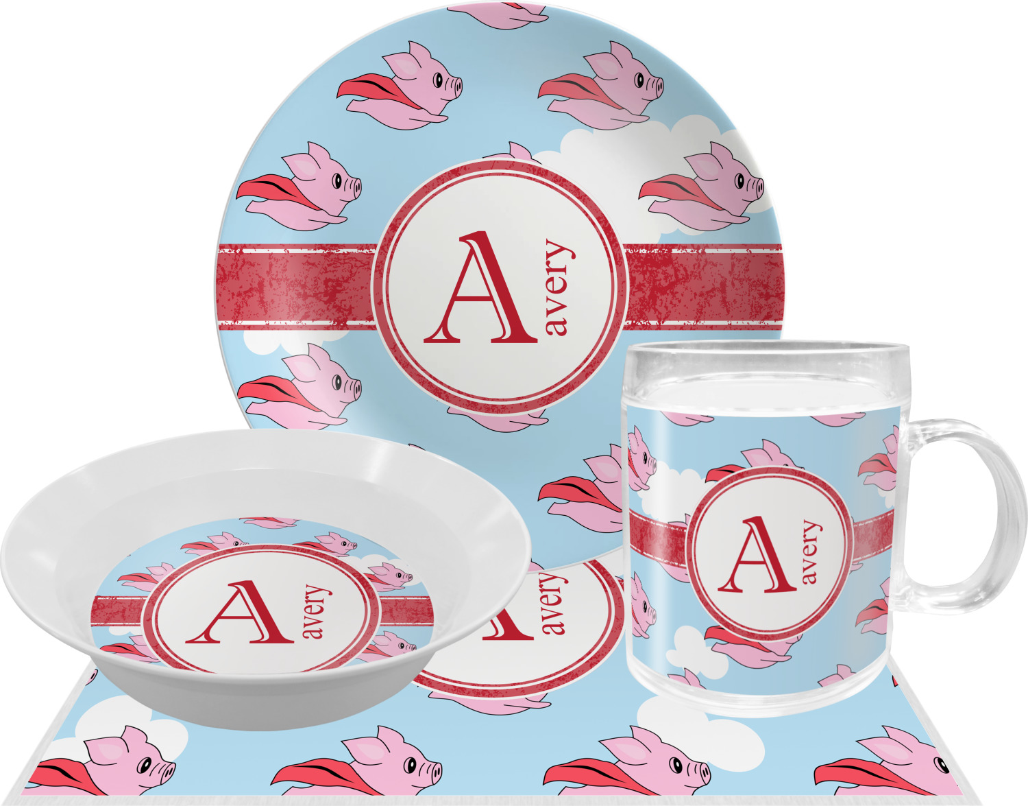 This design with pigs flying is simply fun and playful. The background is of course the sky. We then have a pink pig wearing a red hood flying like a super hero!