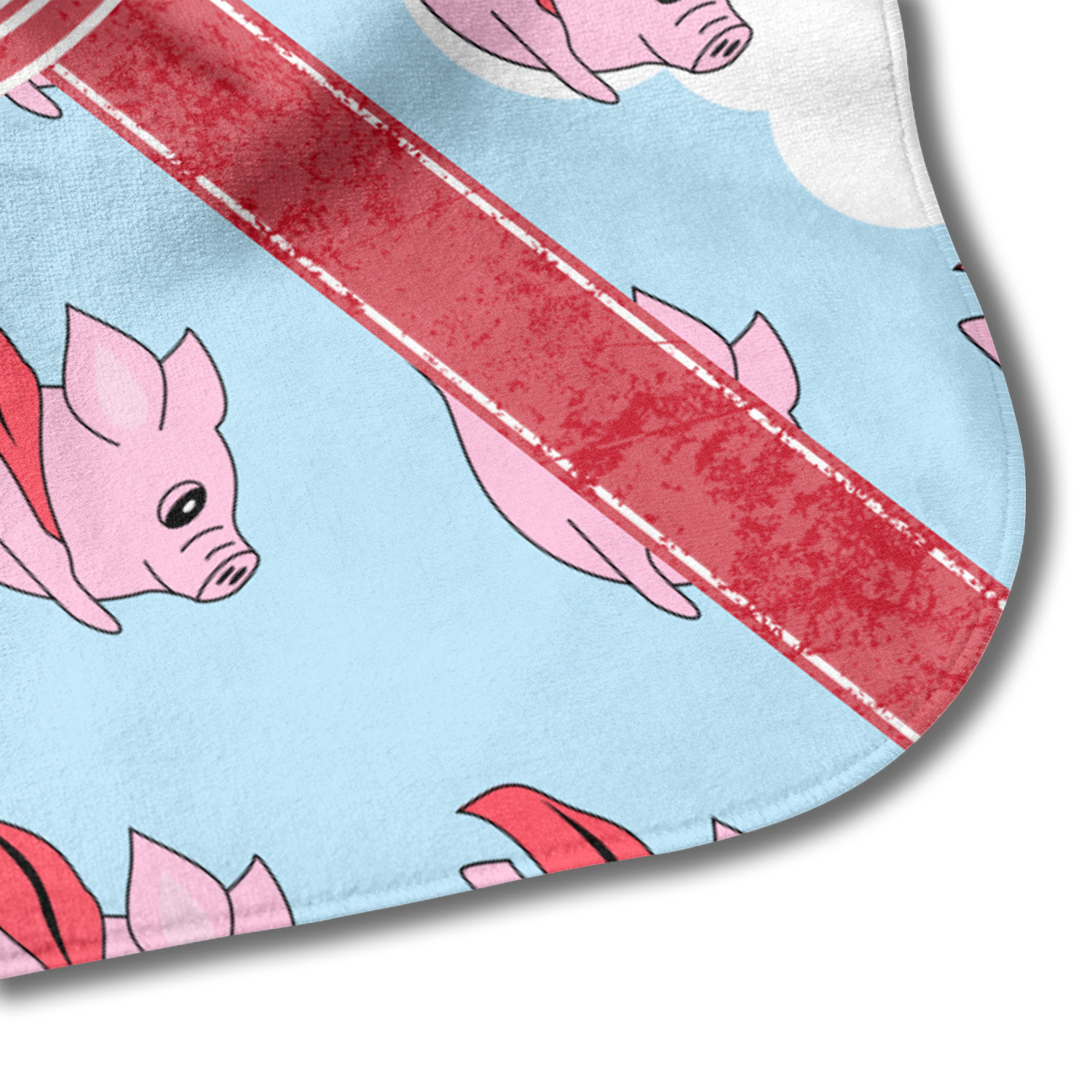 This design with pigs flying is simply fun and playful. The background is of course the sky. We then have a pink pig wearing a red hood flying like a super hero!