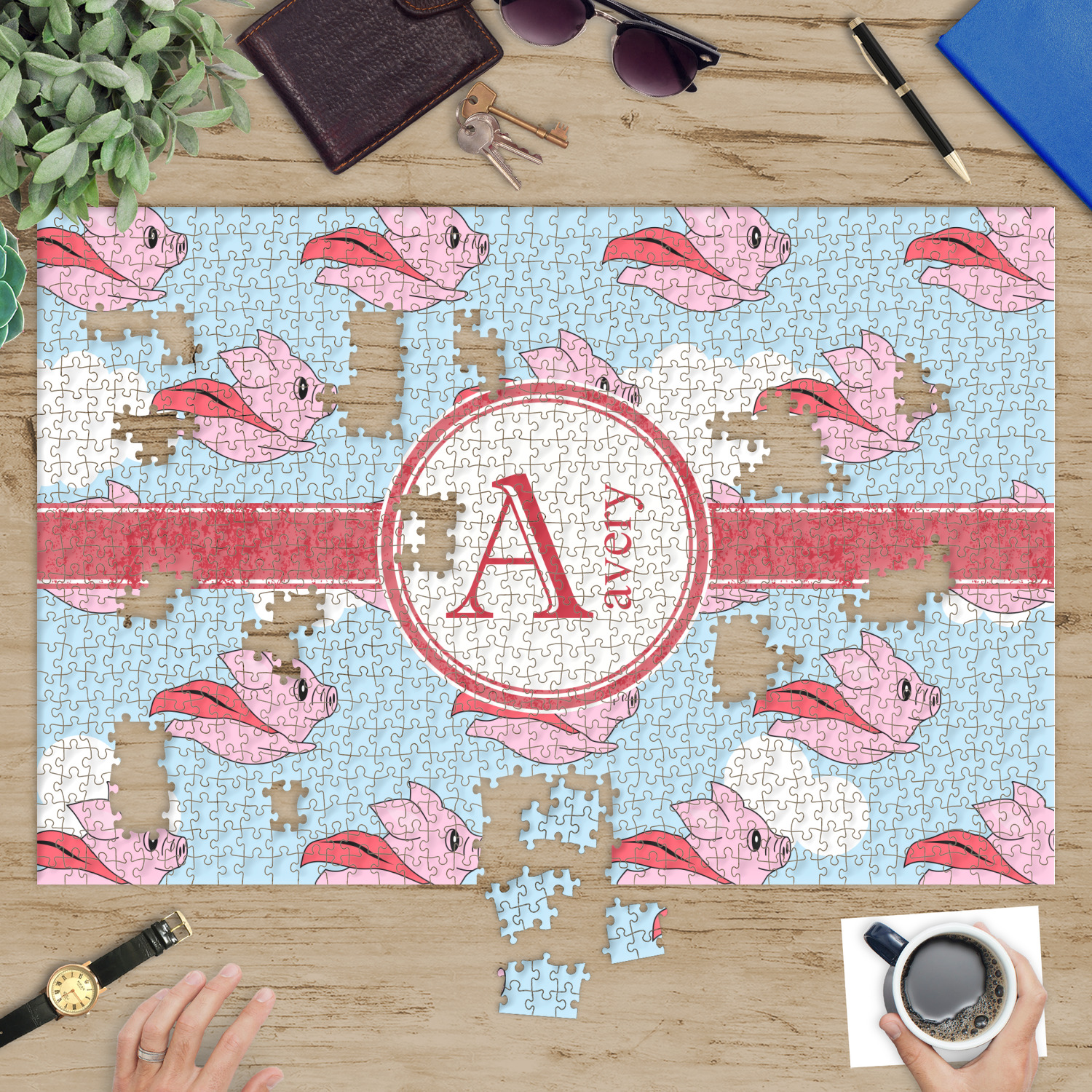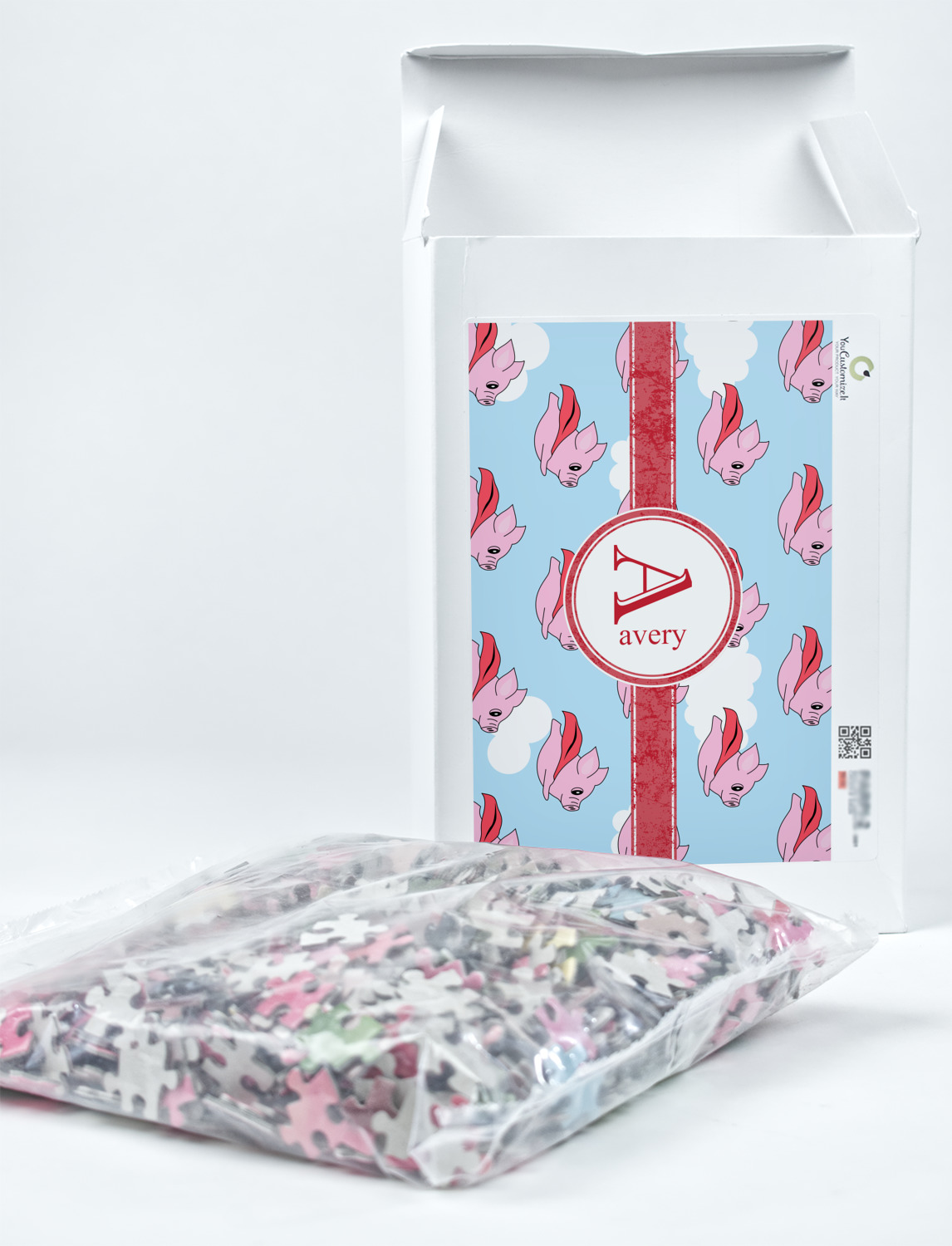 You can also upload your logo or art that you or your kids drew. To create more challenging jigsaw puzzles, you can create a pattern from with your logo or artwork. You can also add other elements such as text or personalization.