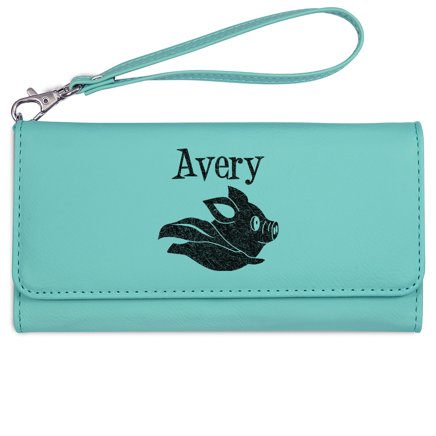 These personalized ladies leather wallets are available in 2 colors - rawhide / cognac and teal.
