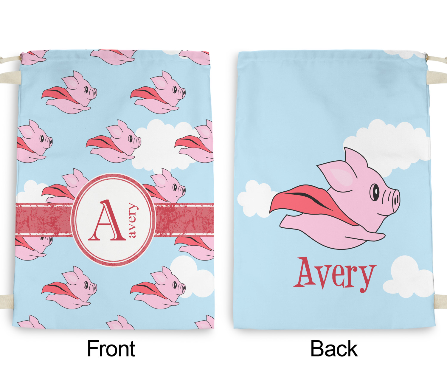 This design with pigs flying is simply fun and playful. The background is of course the sky. We then have a pink pig wearing a red hood flying like a super hero!