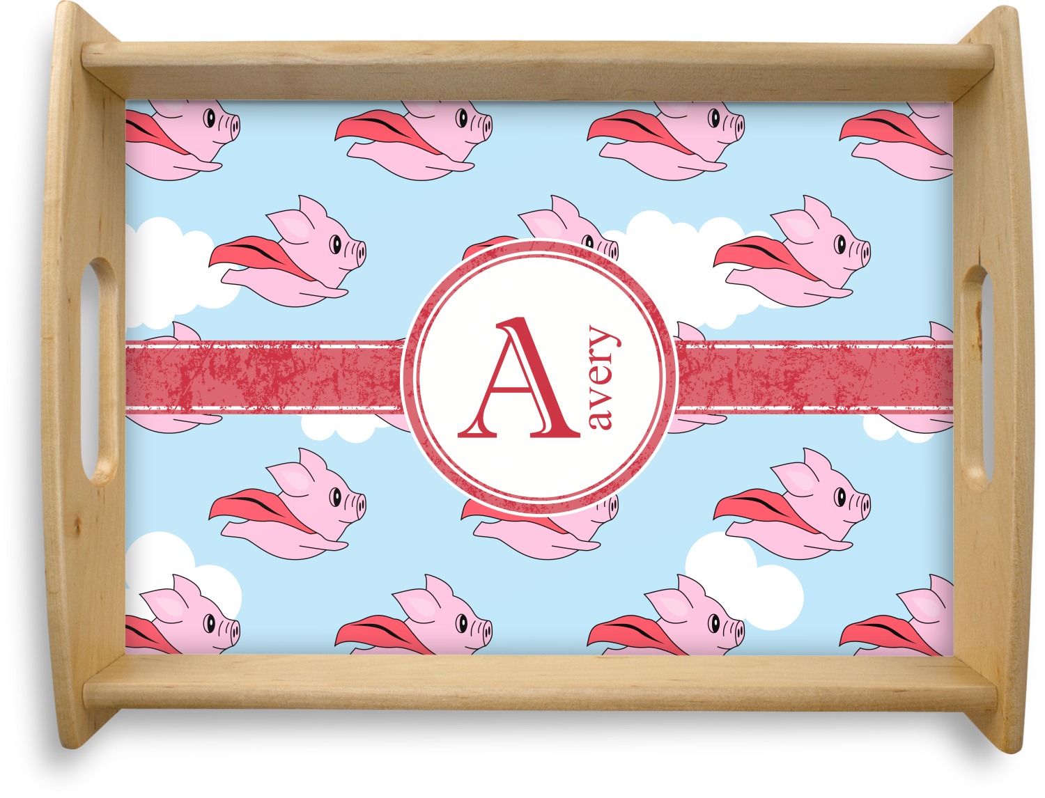 This design with pigs flying is simply fun and playful. The background is of course the sky. We then have a pink pig wearing a red hood flying like a super hero!