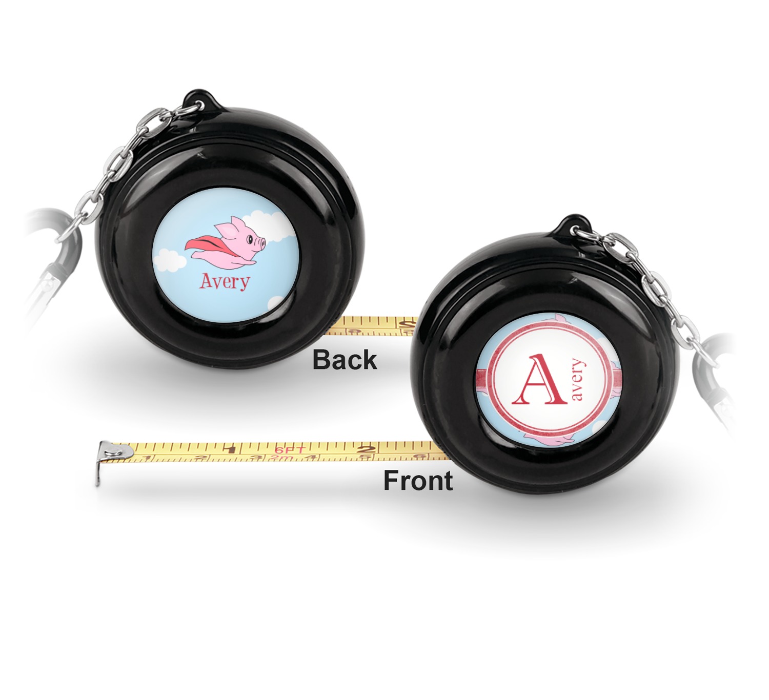 Now for personalizing! You get to personalize both sides of your tape measure. Have fun picking a cute pattern, font, or graphic! Make your personality shine through this fun tool.