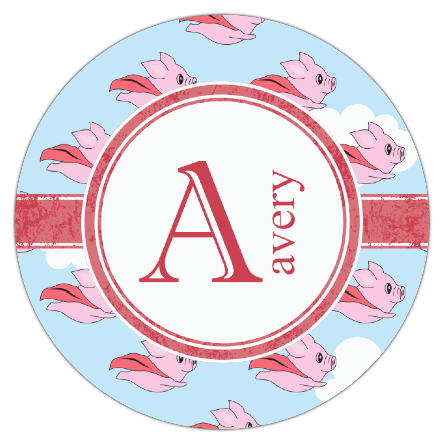 This design with pigs flying is simply fun and playful. The background is of course the sky. We then have a pink pig wearing a red hood flying like a super hero!