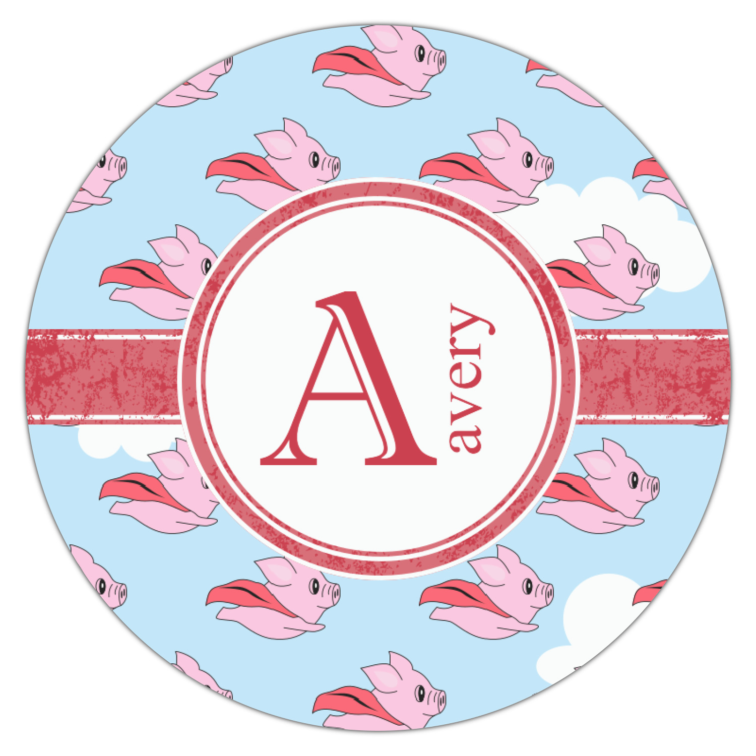 This design with pigs flying is simply fun and playful. The background is of course the sky. We then have a pink pig wearing a red hood flying like a super hero!