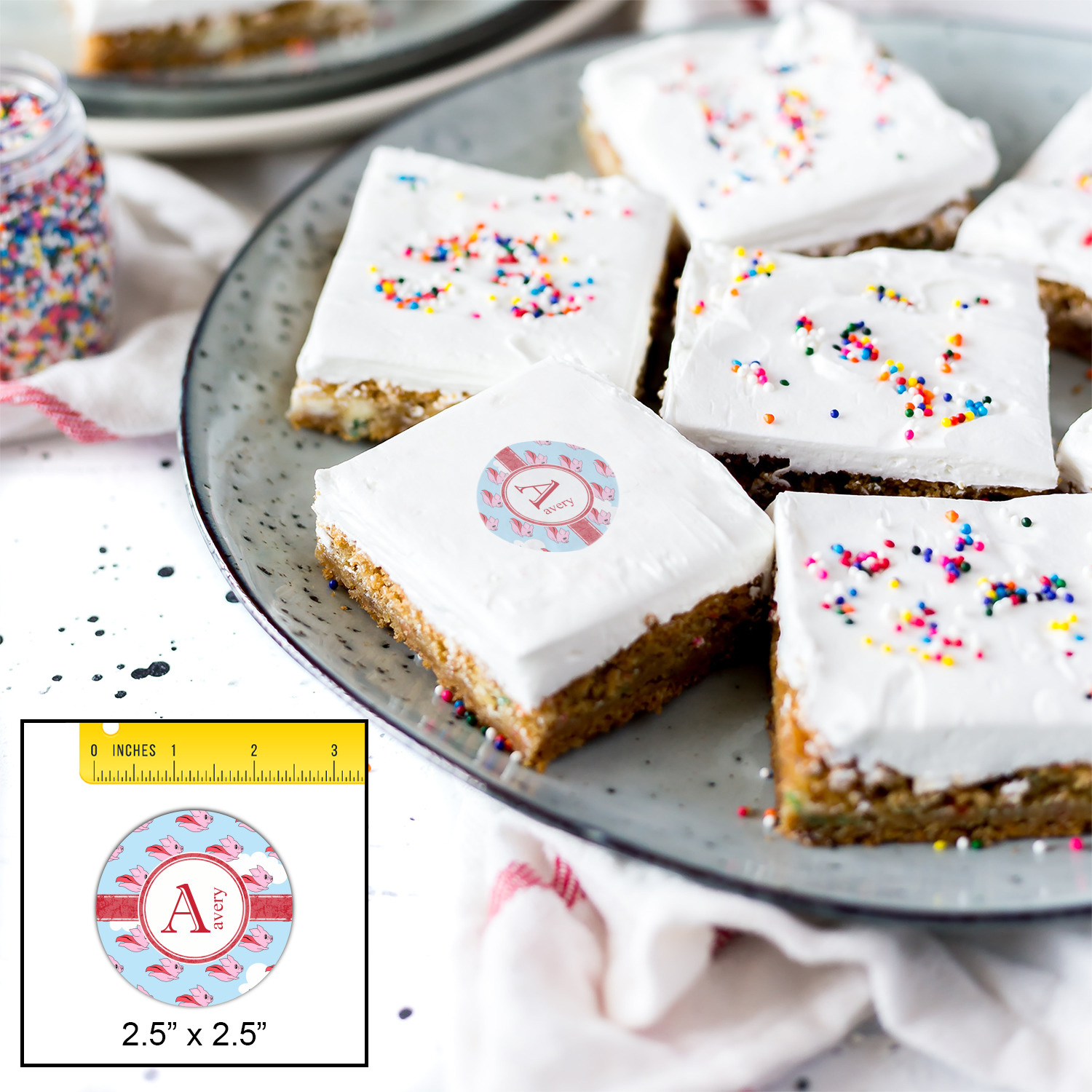 Your customized cookie toppers can be placed on top of any dessert with an icing top.The icing helps adhere the cookie topper to the dessert.