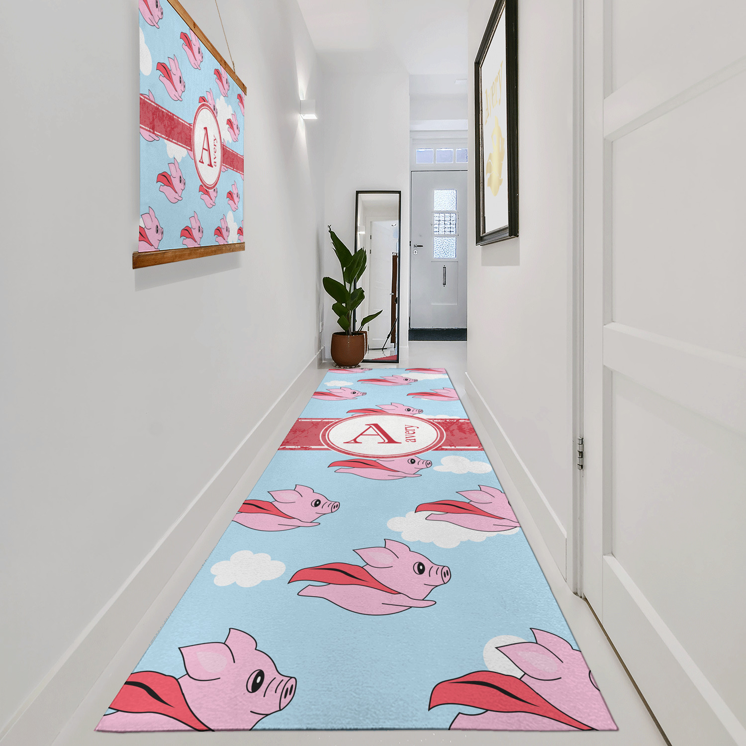 Our custom runner rugs and area rugsare both velvety soft and smooth, with a short pile, beautiful sewn corners and edges on the poly chenille face. We recommend adding an anti-slip mat under your runner rug to prevent it from sliding when under foot when placed on hard or smooth surfaces.