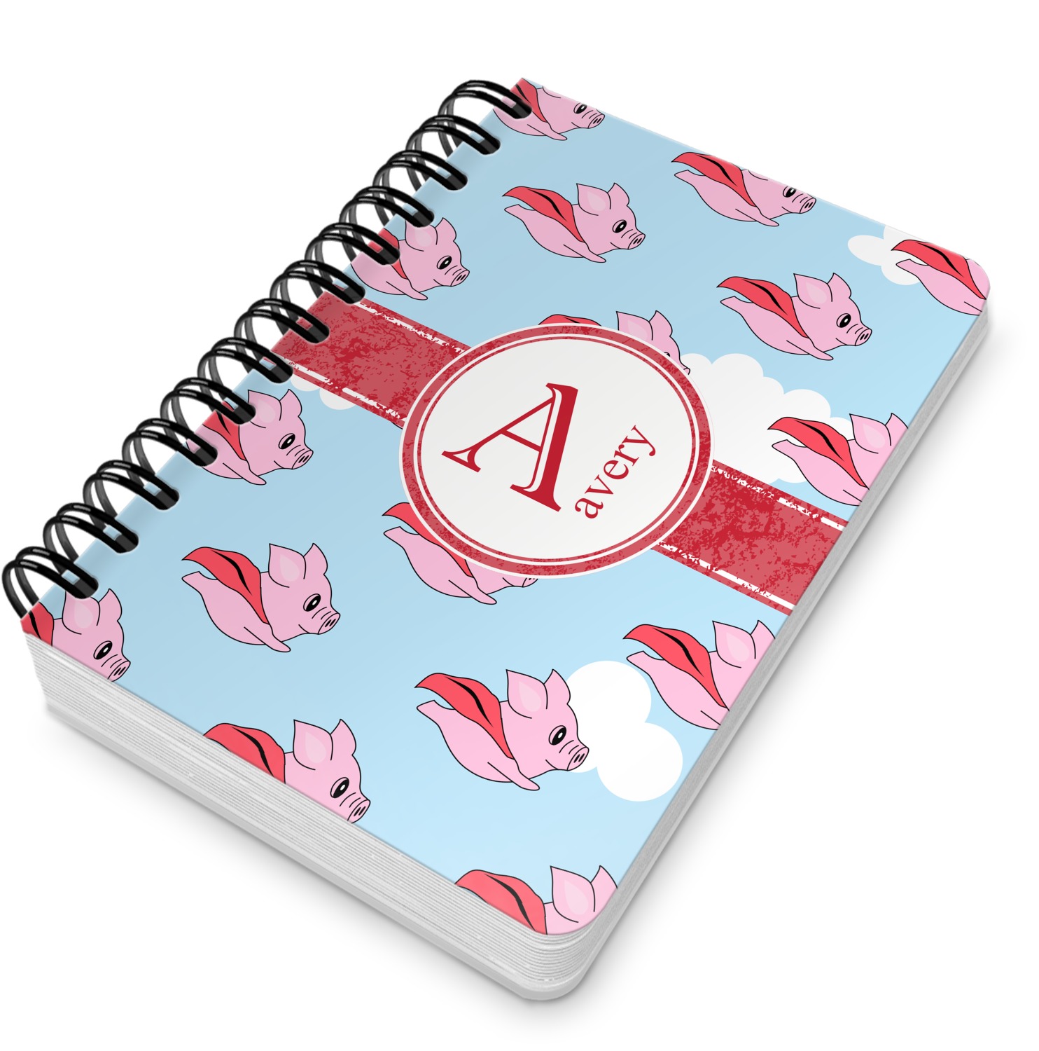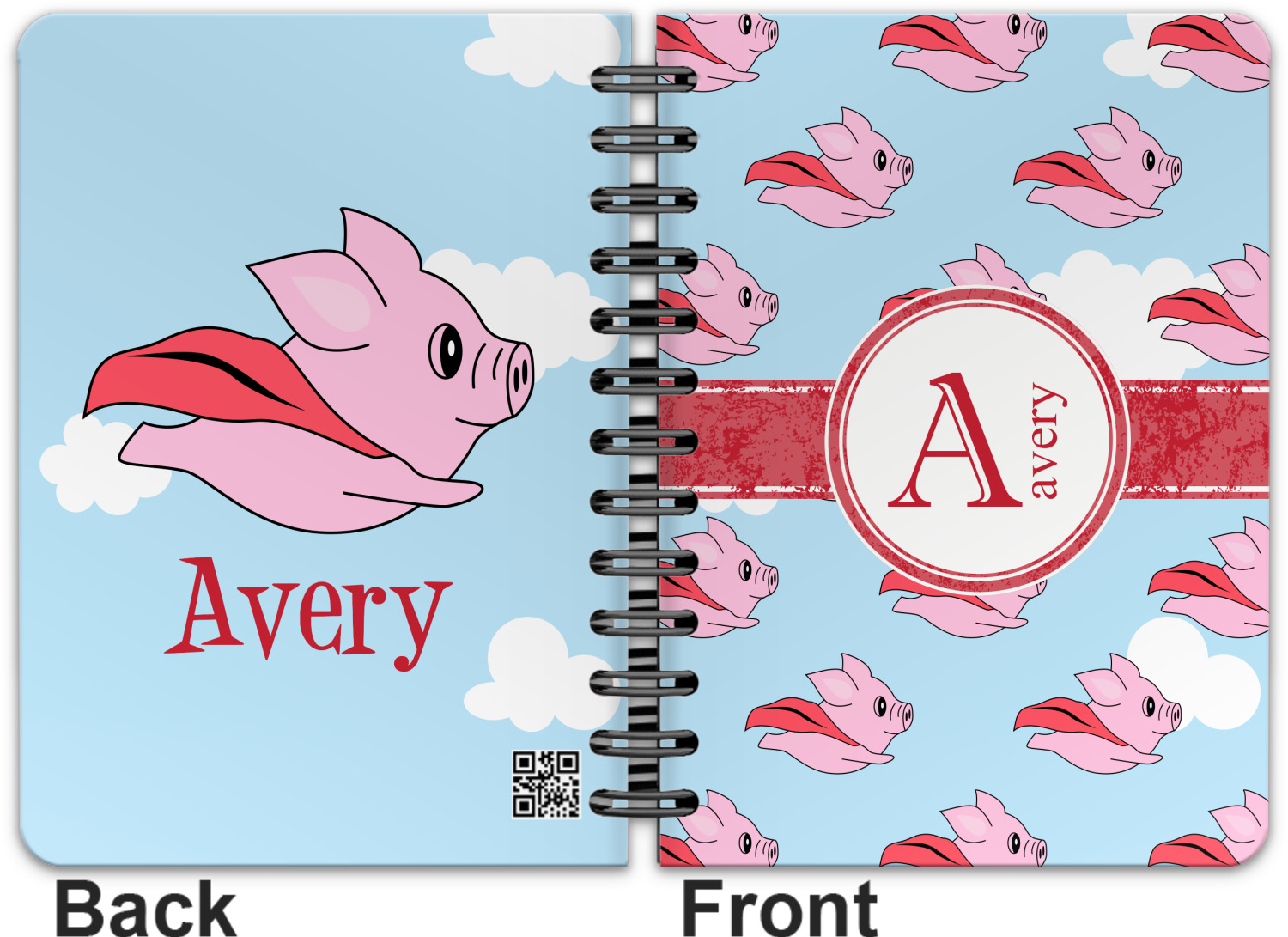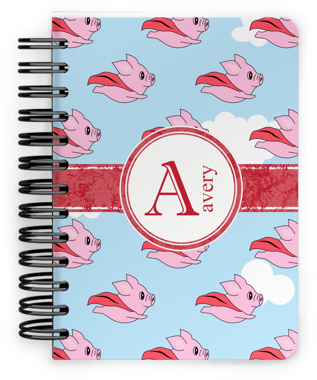 This spiral notebook includes 75 sheets of thick, ruled paper. The front and back of this custom notebook is made of a robust, laminate, plastic covering. We print your personalization on these two panels, underneath a glossy finish, which emphasizes the colors of your design. The two panels and the sheets of paper are held together by a sturdy, black coil. The paper within your bound notebook is perforated for easy, clean tearing.