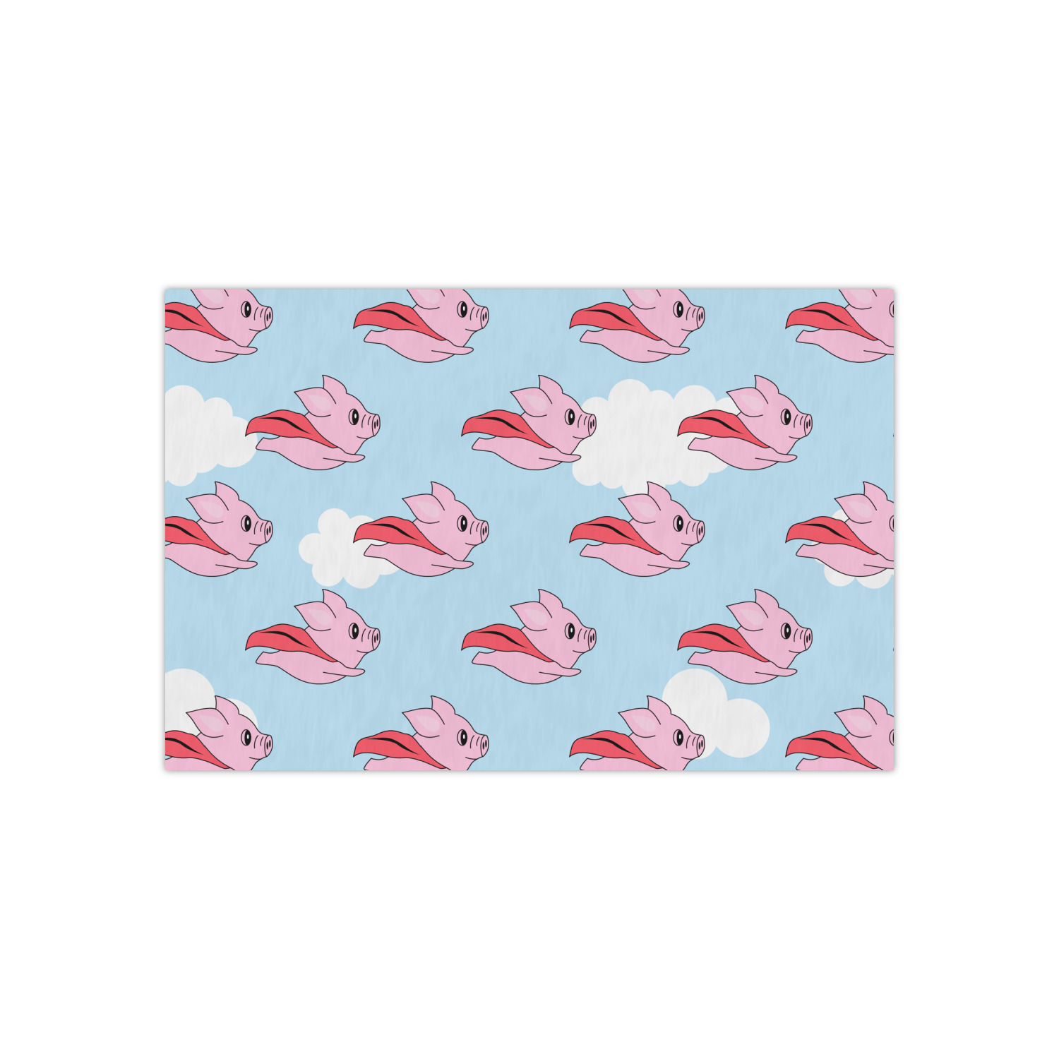 This design with pigs flying is simply fun and playful. The background is of course the sky. We then have a pink pig wearing a red hood flying like a super hero!