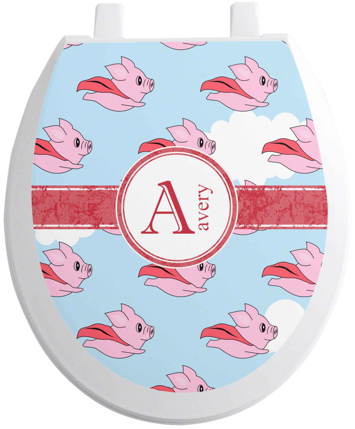 This design with pigs flying is simply fun and playful. The background is of course the sky. We then have a pink pig wearing a red hood flying like a super hero!