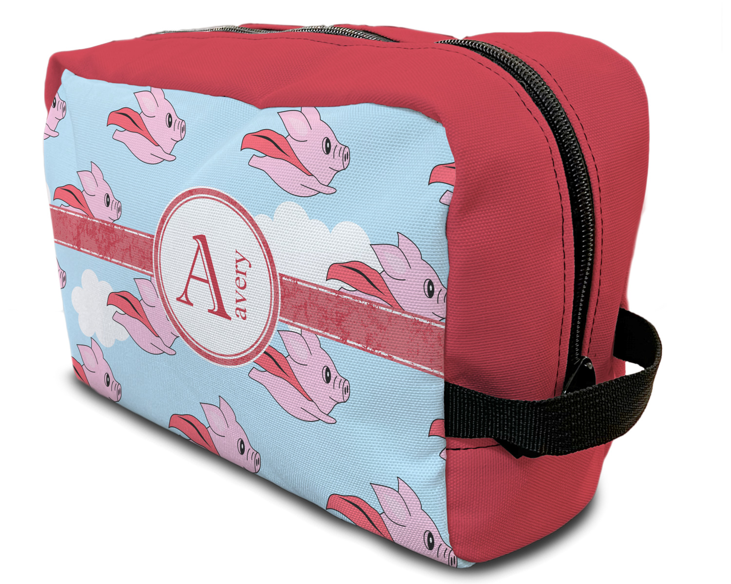 Our toiletry bag has the traditional dopp kit design i.e. a side to side zippered closure, giving you easy access to all the contents inside and a sturdy handle on one side of the bag. The canvas fabric for dopp kits is printed, then cut and sewn here in the USA.