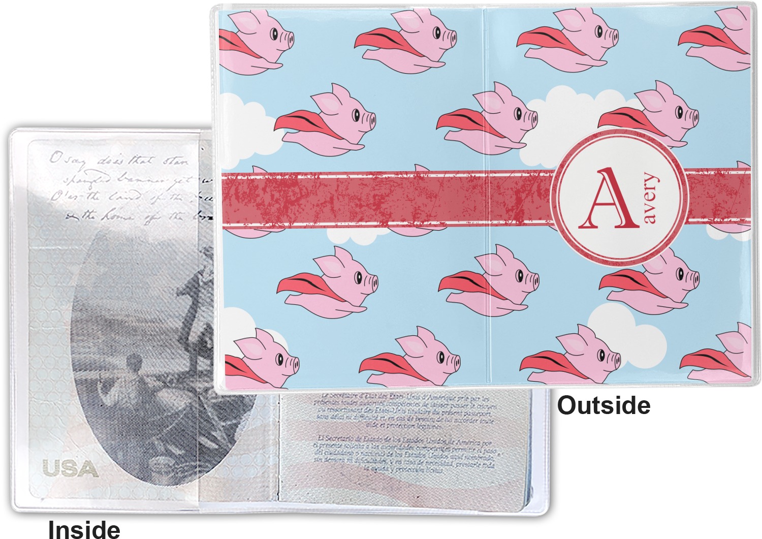 This cover is made of a sturdy clear vinyl with a personalized vinyl insert inside. There is a large and a small pocket on either side to hold the covers of your passport easily and firmly. The passport holder is approximately 7.5" x 5.25", the perfect size to snugly fit your passport. This slim cover is the perfect way to protect your passport without being one more bulky item you have to carry.