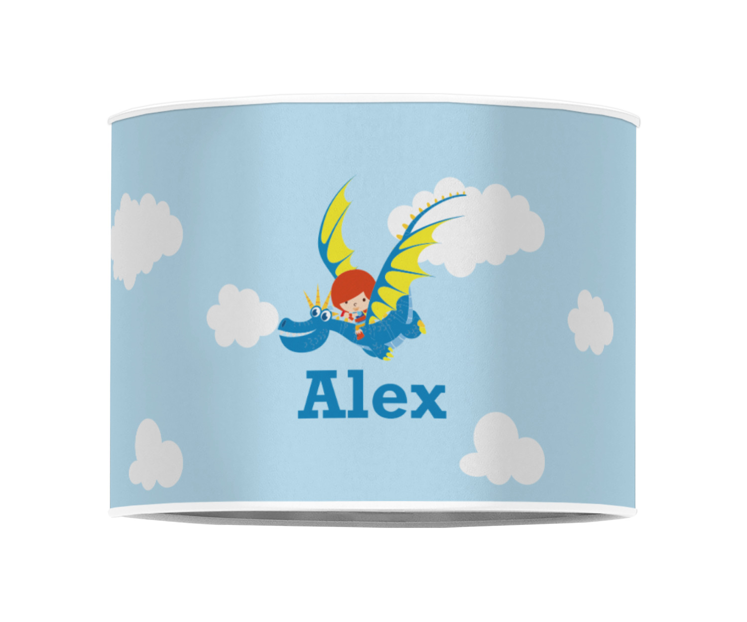 What little boy doesn't want to tame his own dragon? Open his imagination with this adorable design showing your little man flying through a beautiful blue cloudy sky on his own dragon.