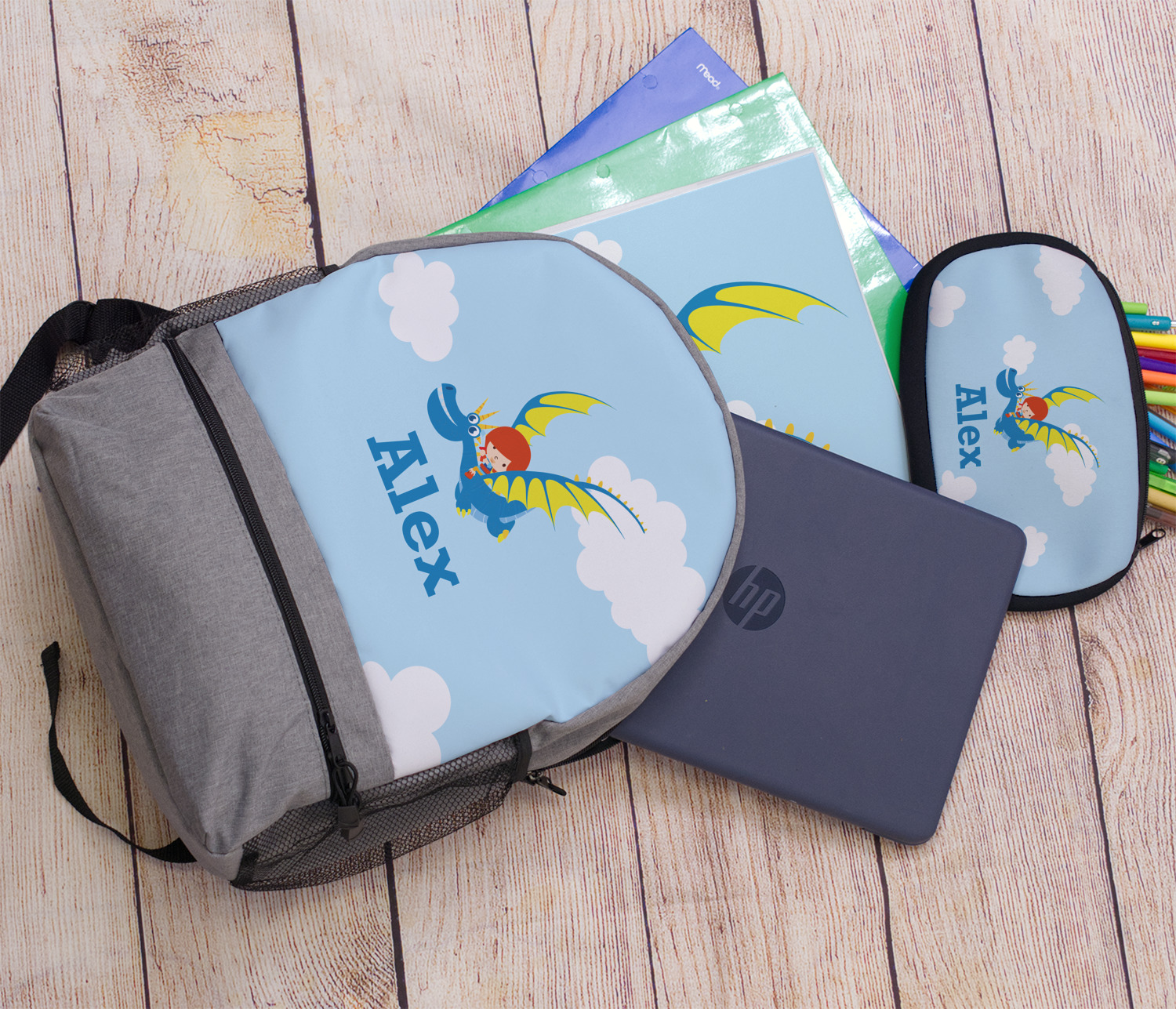 What little boy doesn't want to tame his own dragon? Open his imagination with this adorable design showing your little man flying through a beautiful blue cloudy sky on his own dragon.