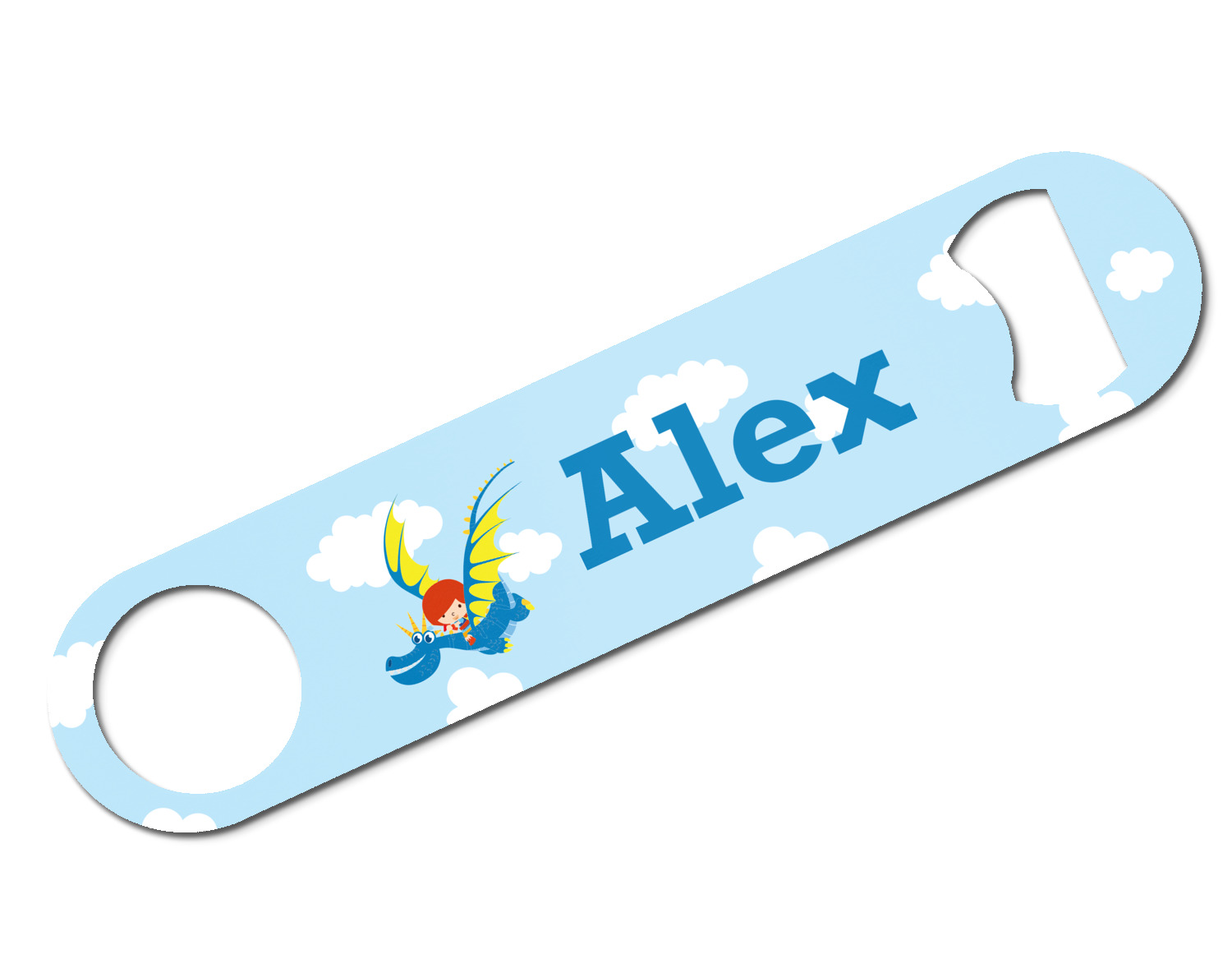 What little boy doesn't want to tame his own dragon? Open his imagination with this adorable design showing your little man flying through a beautiful blue cloudy sky on his own dragon.