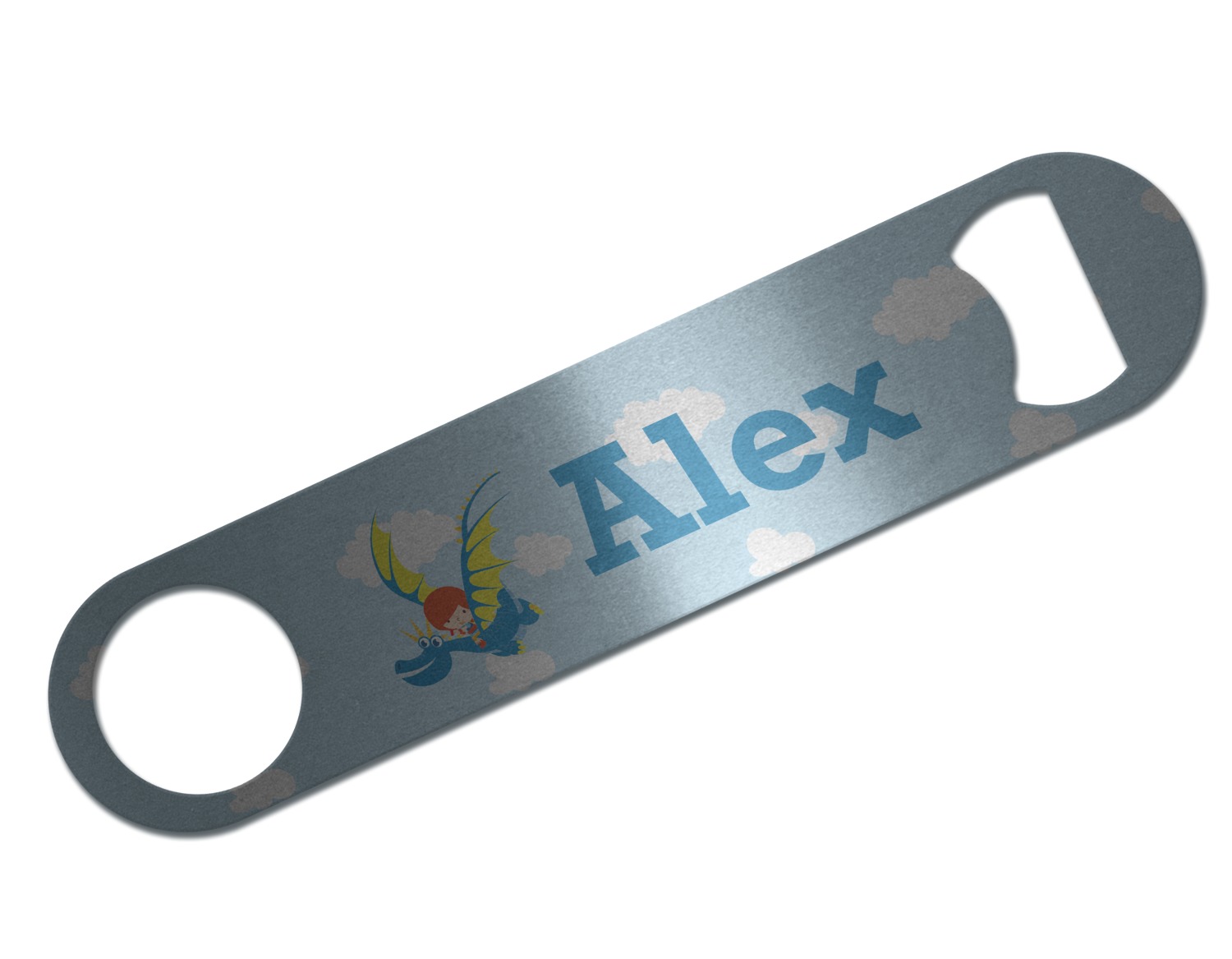 Made from stainless steel, these beer bottle openers are 7 by 1.625 inches, giving you plenty of leverage when trying to open a stubborn bottle. On one end of this personalized bottle opener, you'll find a circular hole for you to hang and display your opener. On the opposite end, you'll find the tool used for opening bottles. This opener in particular has the same structure and style as professional bartender bottle openers. Your customization is sublimated onto both the back and front, and both sides can be customized individually. Choose from one of our two base colors - white or silver.