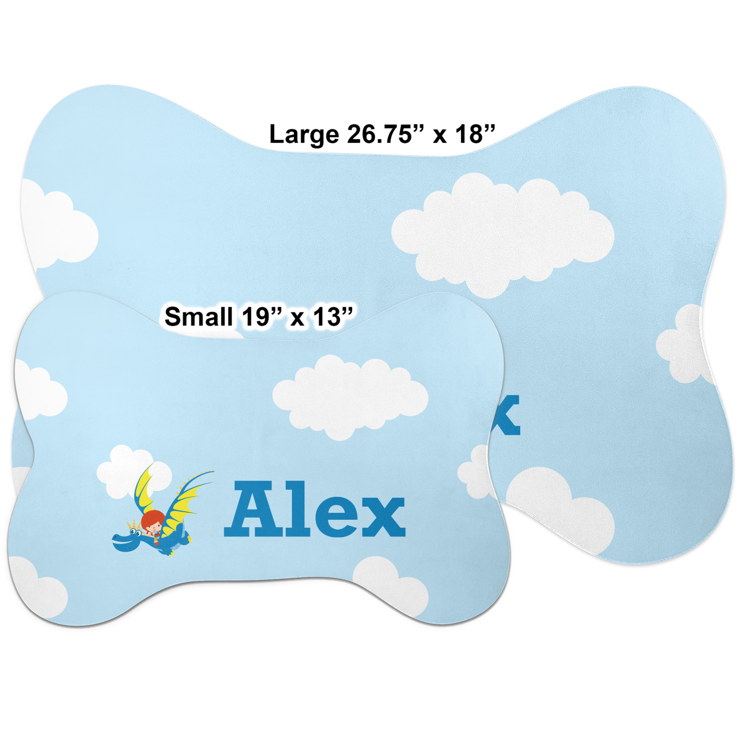 The bone-shaped dog bowl mat is the perfect way to add a touch of personality to your dog's eating area! Dogs make inevitable messes, especially when they eat and drink. Save the integrity of your floors and the time spent cleaning them by purchasing a personalized mat that catches spills!