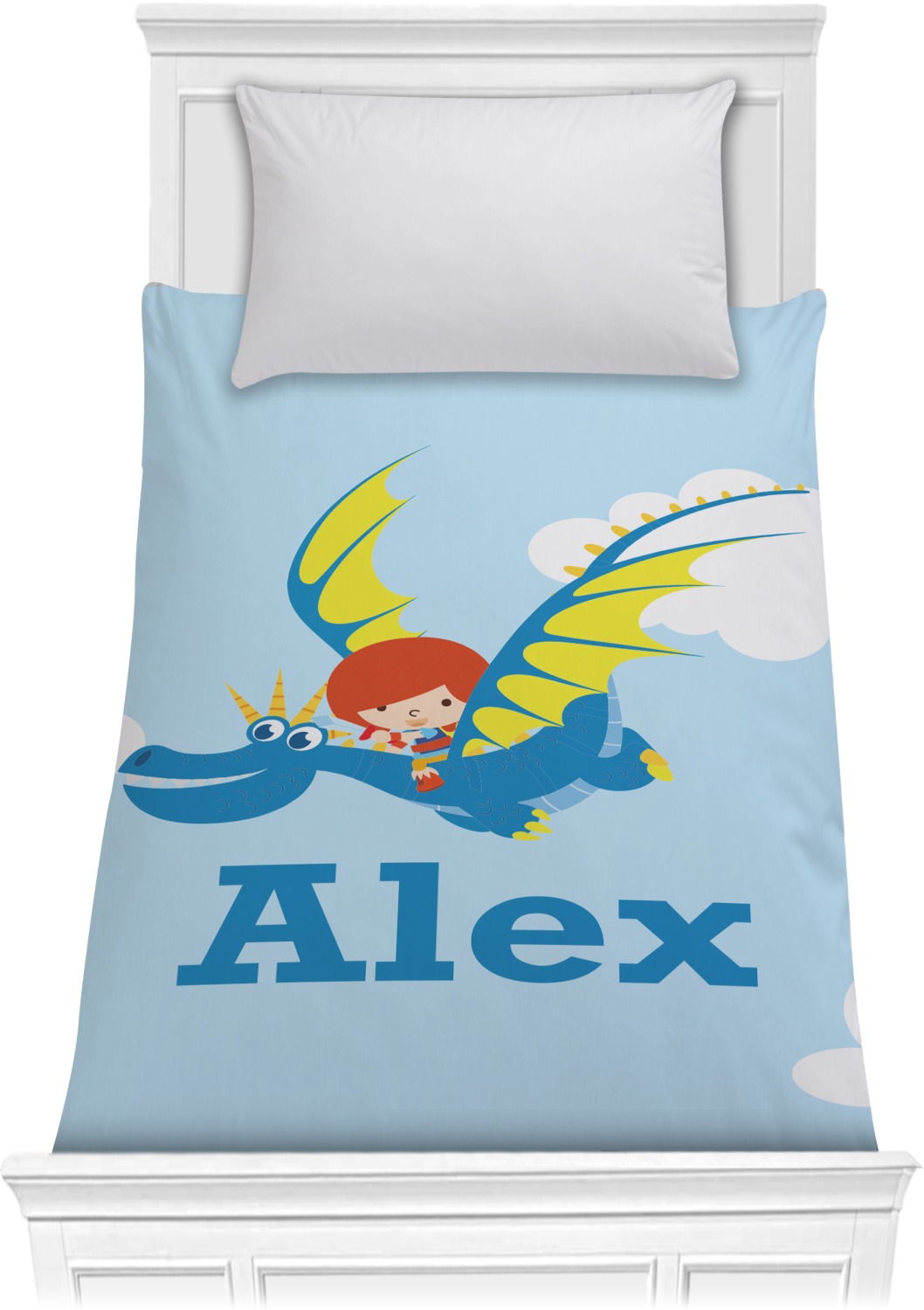 What little boy doesn't want to tame his own dragon? Open his imagination with this adorable design showing your little man flying through a beautiful blue cloudy sky on his own dragon.