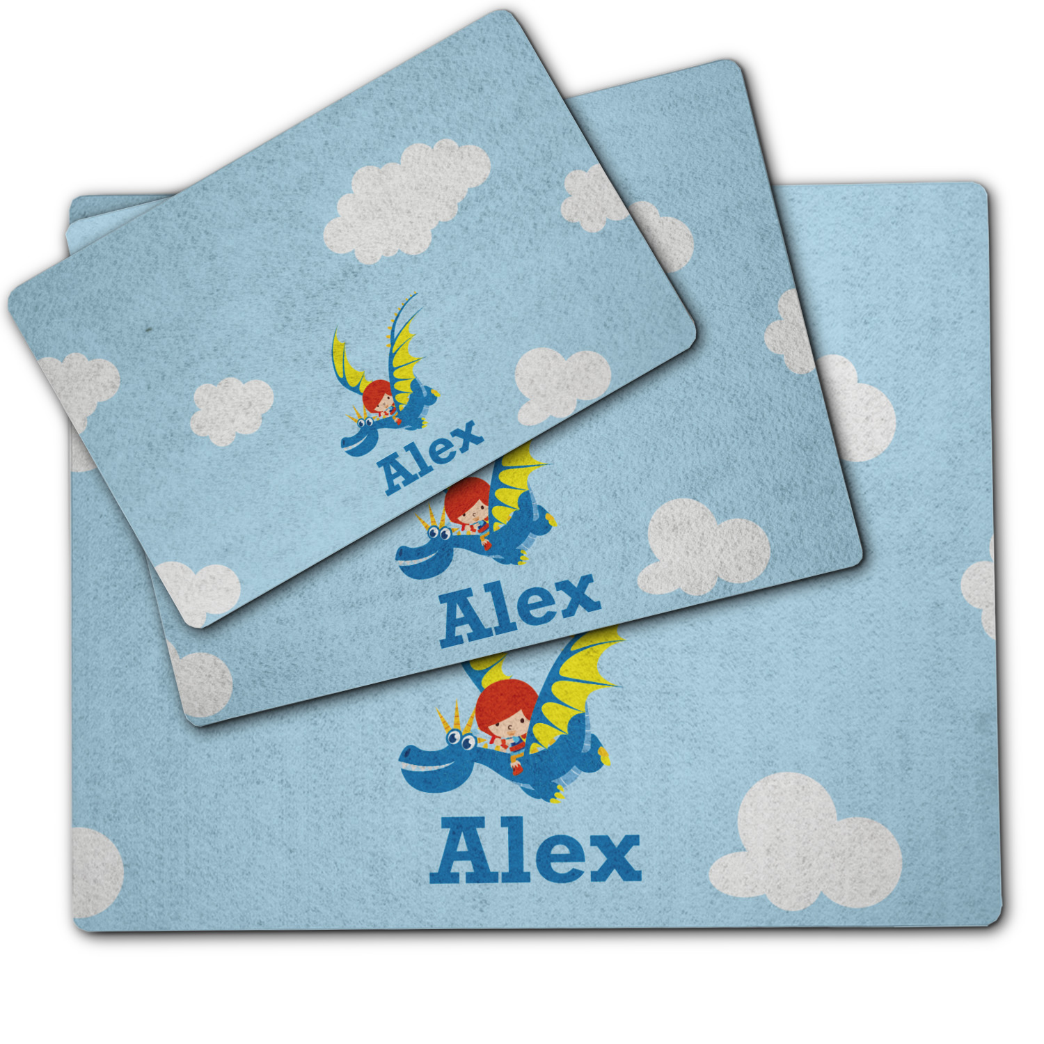 What little boy doesn't want to tame his own dragon? Open his imagination with this adorable design showing your little man flying through a beautiful blue cloudy sky on his own dragon.