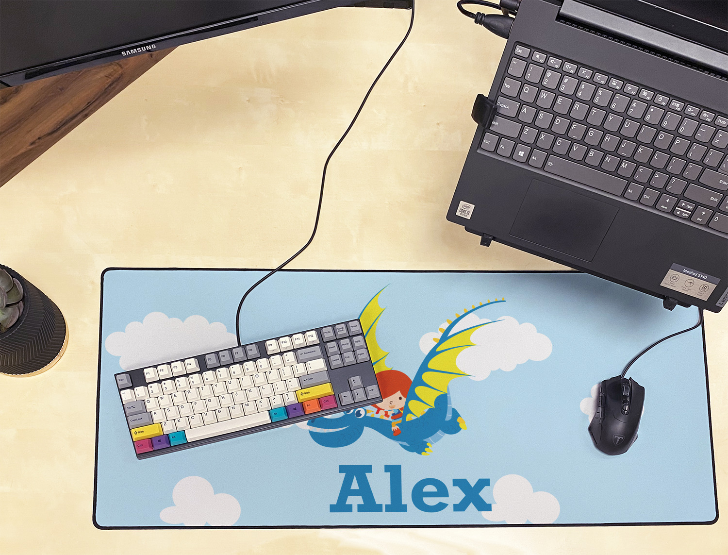 What little boy doesn't want to tame his own dragon? Open his imagination with this adorable design showing your little man flying through a beautiful blue cloudy sky on his own dragon.