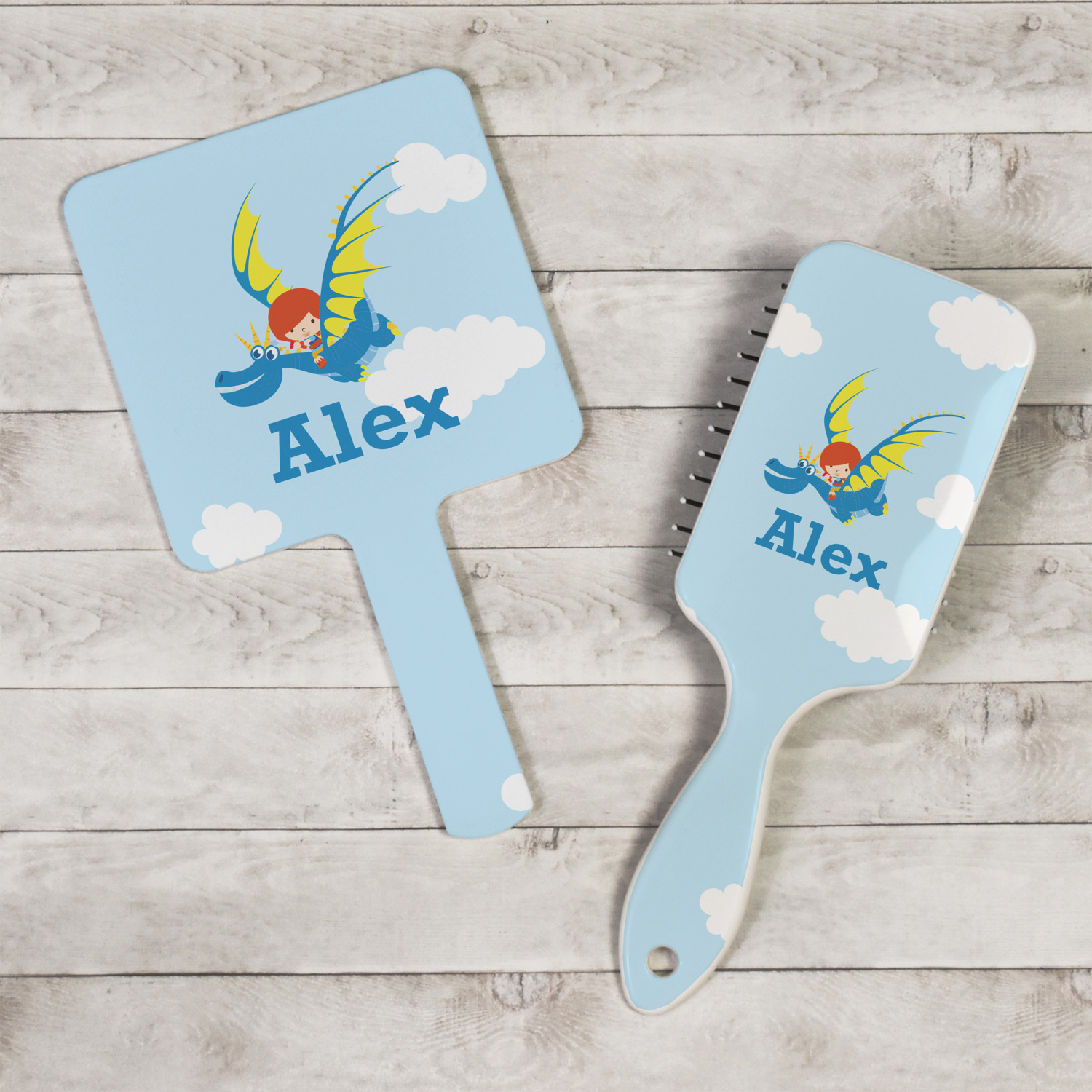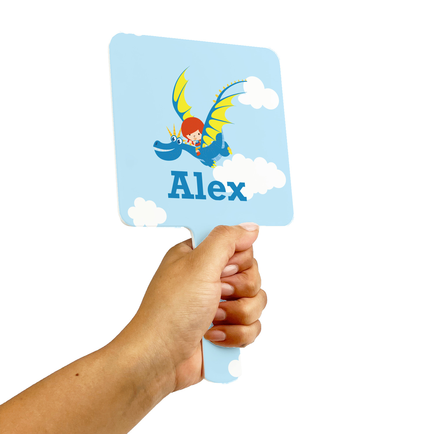 What little boy doesn't want to tame his own dragon? Open his imagination with this adorable design showing your little man flying through a beautiful blue cloudy sky on his own dragon.