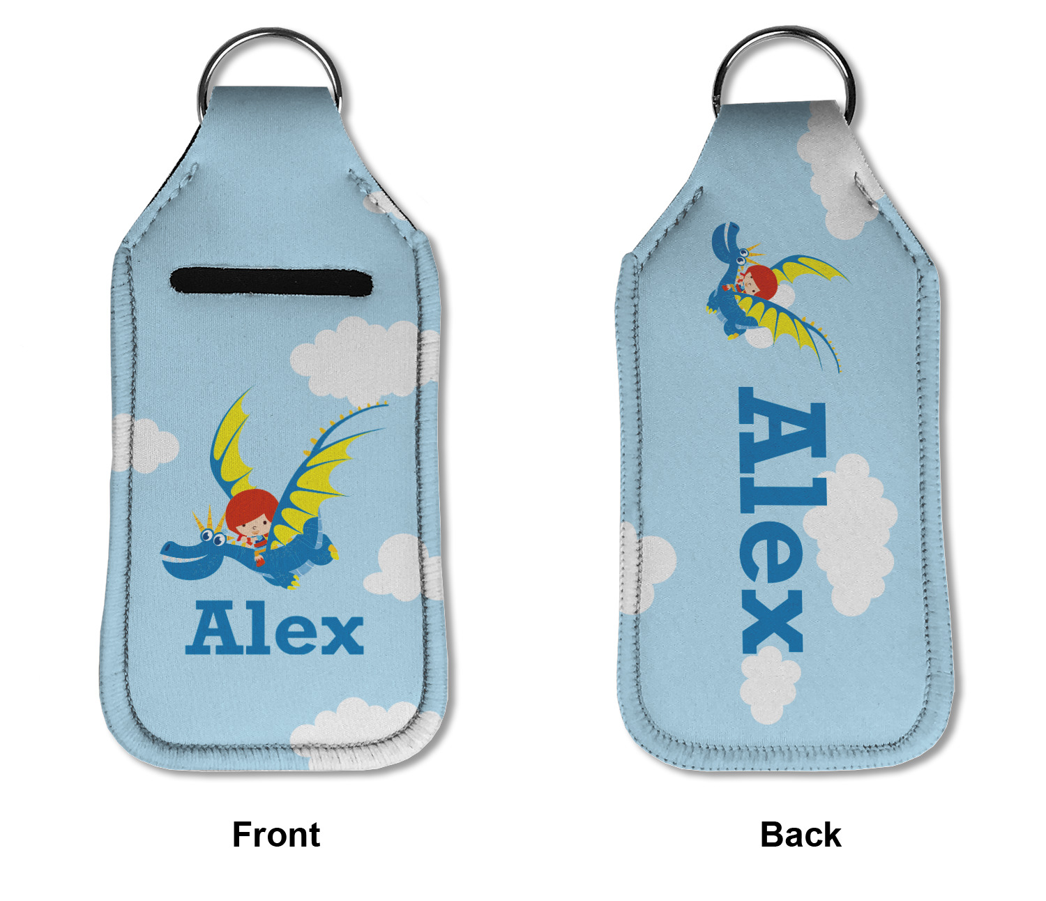 Each hand sanitizer holder comes with its own empty travel-sized, refillable hand sanitizer sure to fit snug in your customized sanitizer case! Our hand sanitizer cases are a durable, yet soft neoprene material sure to last any daily activities or travel agenda. Customize and personalize a hand sanitizer bottle holder with one of our two sizes - small (4.25" x 2.25") or large (5.5" x 2.5"). Each travel sanitizer holder comes with a keyring for attachment on bags, keys, or more!