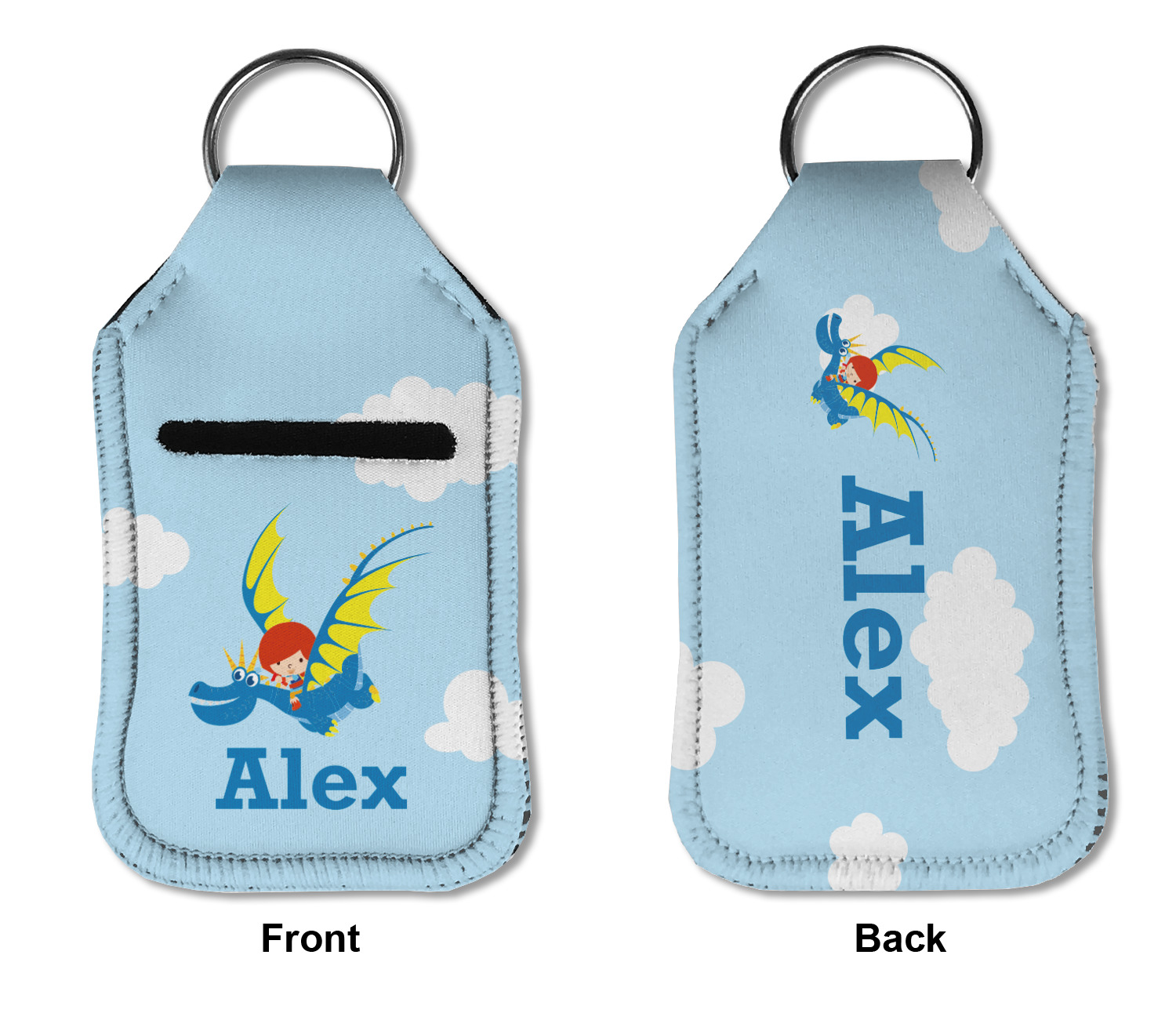 Each hand sanitizer holder comes with its own empty travel-sized, refillable hand sanitizer sure to fit snug in your customized sanitizer case! Our hand sanitizer cases are a durable, yet soft neoprene material sure to last any daily activities or travel agenda. Customize and personalize a hand sanitizer bottle holder with one of our two sizes - small (4.25" x 2.25") or large (5.5" x 2.5"). Each travel sanitizer holder comes with a keyring for attachment on bags, keys, or more!