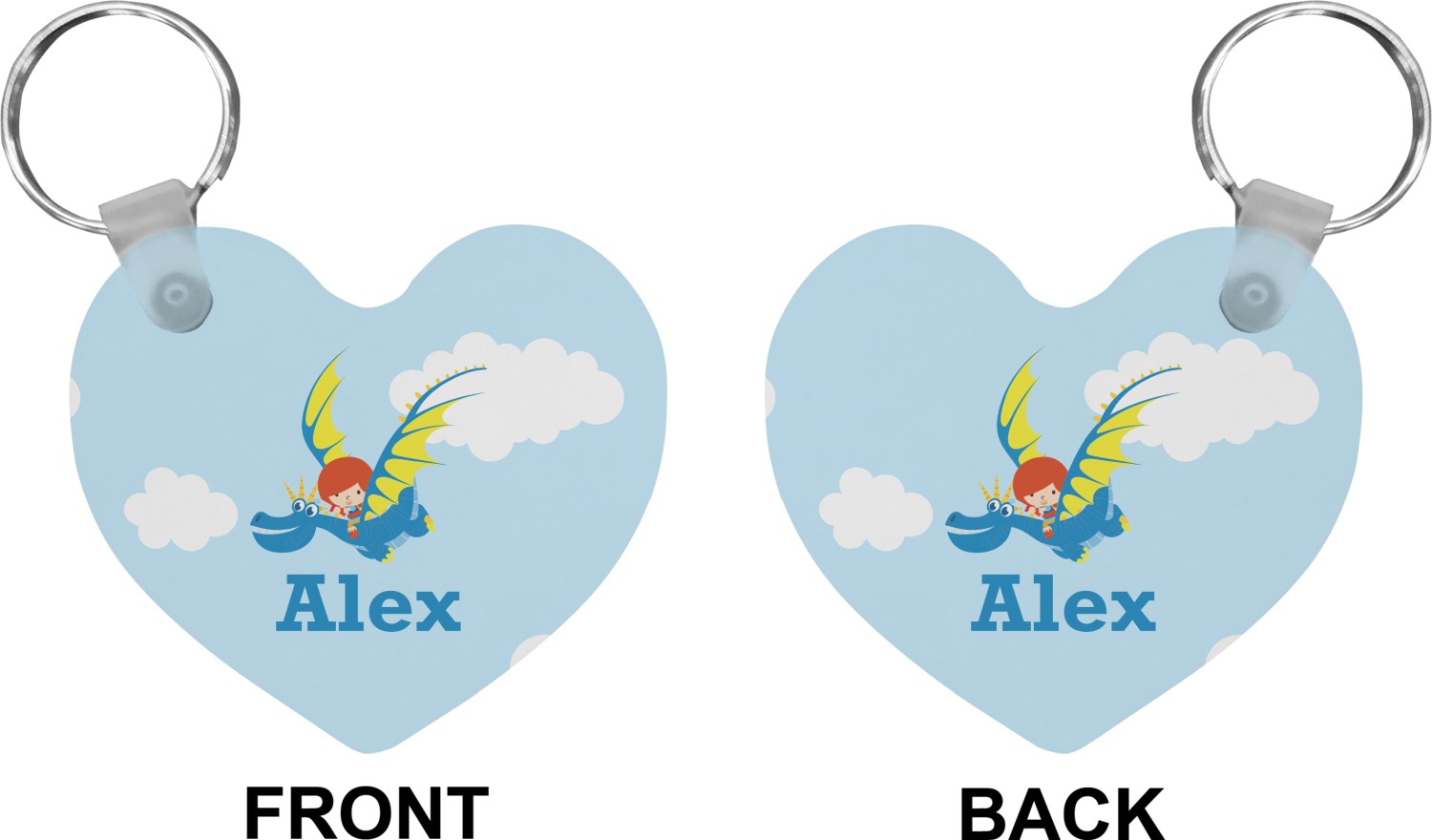Our personalized keychains attach to the included metal, split key ring with a plastic, removable snap. Since a metal ring is included with your purchase, you have the liberty to keep your keys together on the ring, with or without your unique keychain. We offer this keychain in three different shapes: circle, heart, or diamond. We print your personalized design(s) on both sides of the key chain, and the surface has a glossy, reflective finish that only emphasizes your design. Each keychain is approximately 2.25 by 2.25 inches.