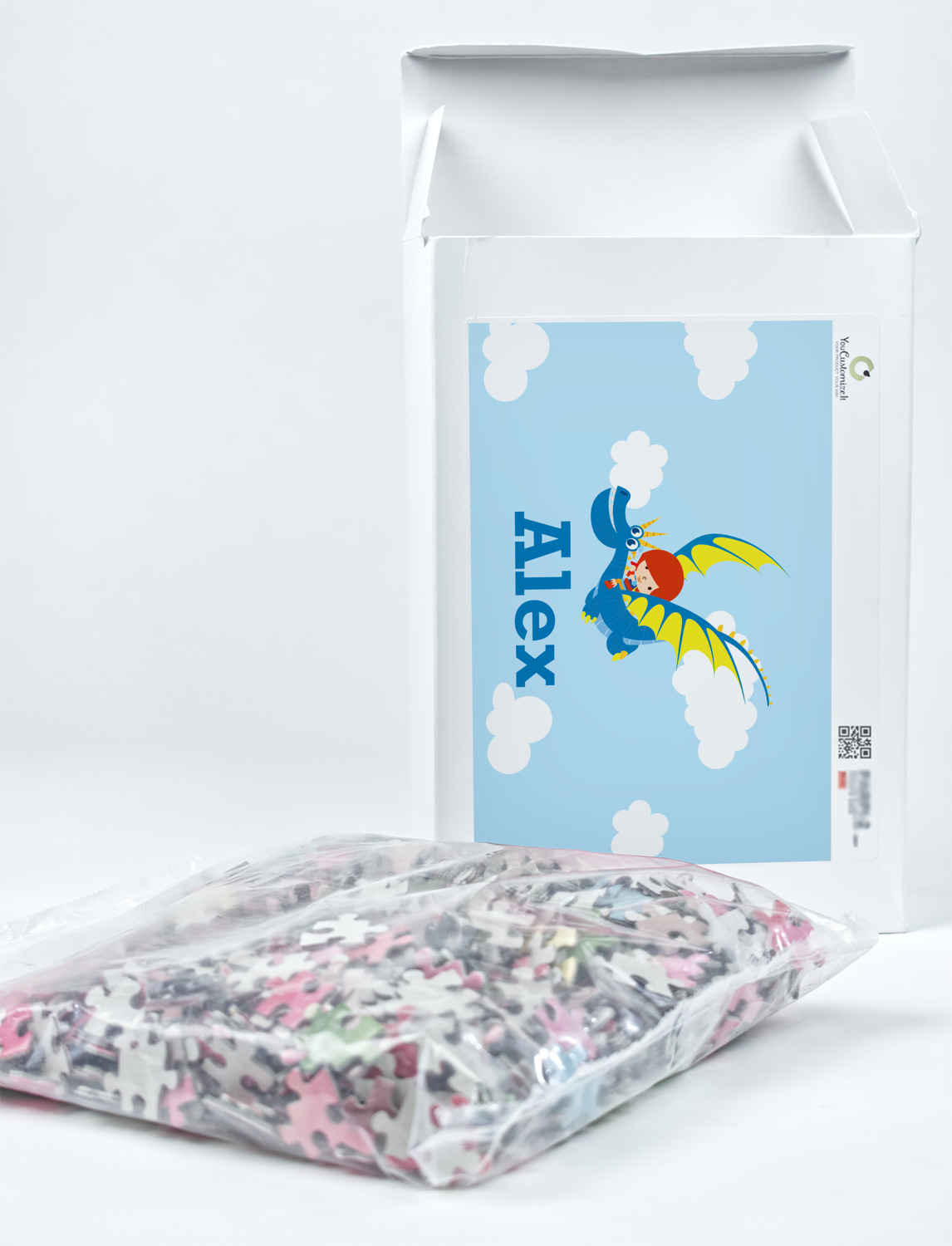 You can also upload your logo or art that you or your kids drew. To create more challenging jigsaw puzzles, you can create a pattern from with your logo or artwork. You can also add other elements such as text or personalization.