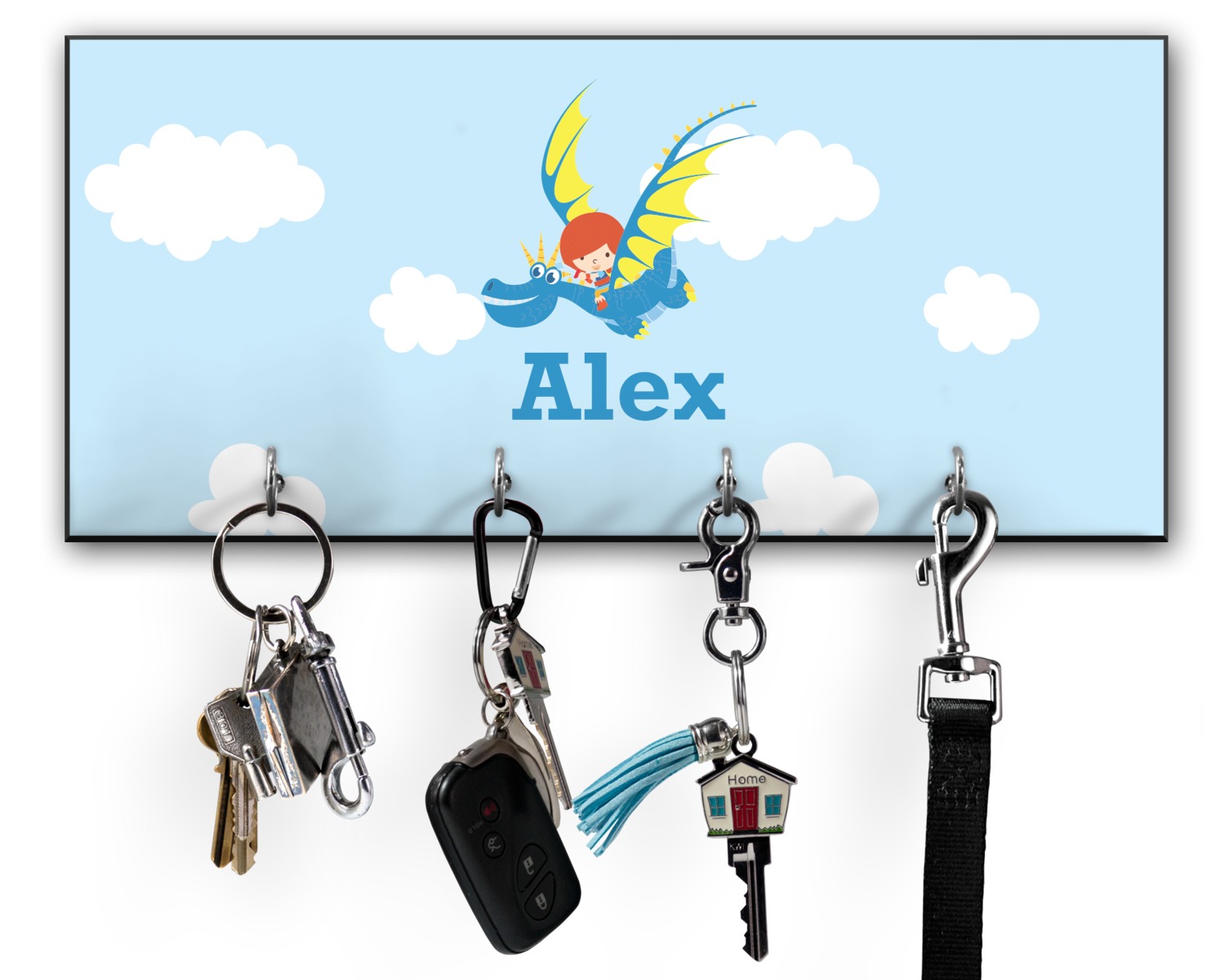 This 11" x 5" key hanger is made of sturdy wood and has four metal hooks lining the bottom. This is the perfect size for a family with several drivers. Not only can you hang keys on it though, but pet leashes and other small items. The board is black on the sides and back and is printed with the design of your choice on the front.