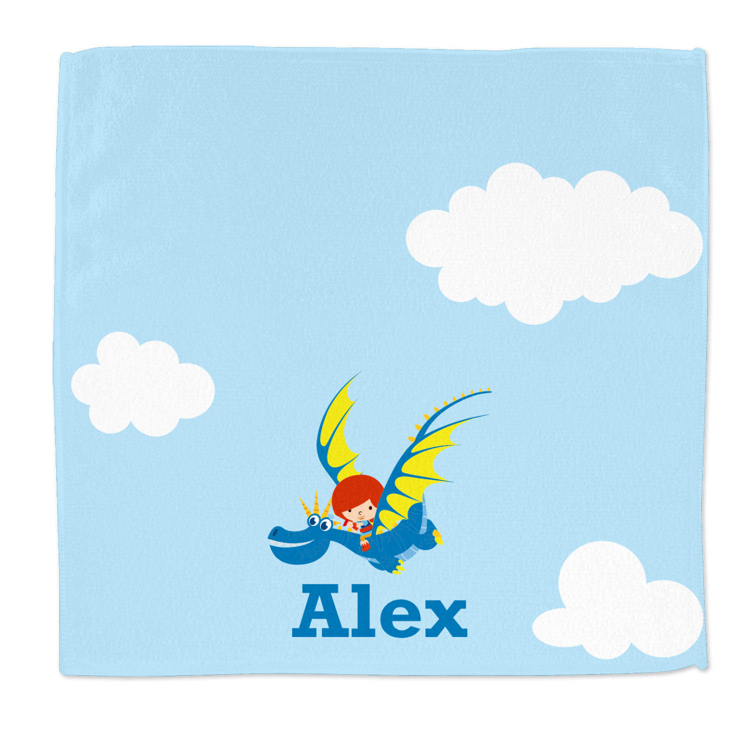 What little boy doesn't want to tame his own dragon? Open his imagination with this adorable design showing your little man flying through a beautiful blue cloudy sky on his own dragon.