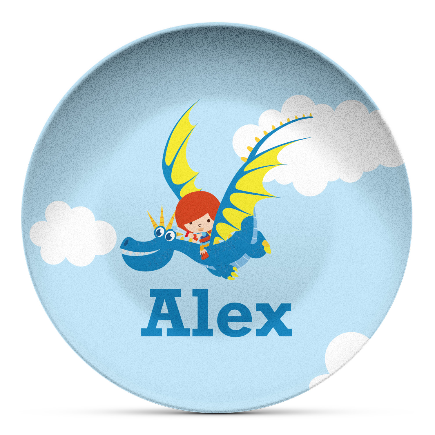 What little boy doesn't want to tame his own dragon? Open his imagination with this adorable design showing your little man flying through a beautiful blue cloudy sky on his own dragon.